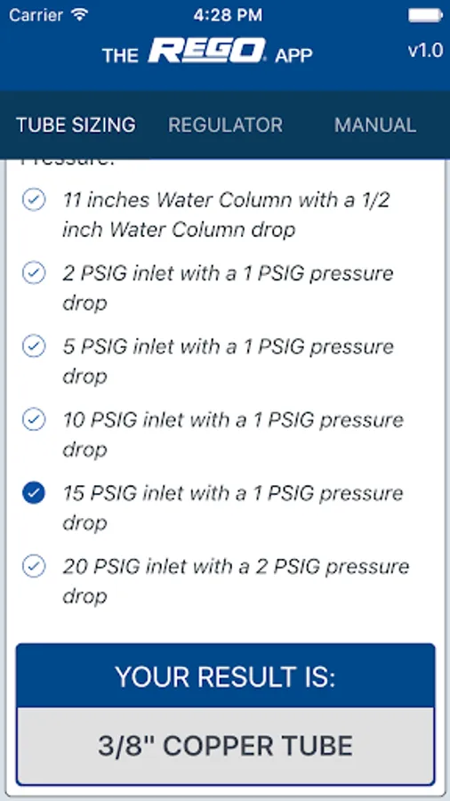 The RegO® App is a convenient way to carry the tools you’ve been using for years in the palm of your hand. The easy to use interface includes the RegO® Regulator Selection & Pipe Sizing Slide Chart, the first Regulator Selection Slide Chart created for the Propane Industry. The RegO® App also includes the RegO® Serviceman’s Manual, the Industry’s original and most used LP-Gas Serviceman’s Manual.