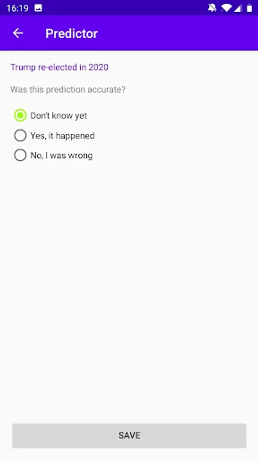 Enter your prediction, but be careful! Once it's locked in, there's no going back - your prediction is forever set in stone, no editing, no deletes! The date and time of your prediction is automatically logged, so everyone can see you predicted it before it happened.