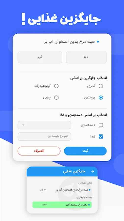 افرادی که رژیم غذایی می گیرند معمولا به دو دسته کلی تقسیم می شوند، کسانی که تمایل به خوردن مواد غذایی را در روز ها به صورت روتین دارند و افرادی که تمایل دارند تا هر روز یک غذای جدید را امتحان کنند. برای گروه اول که کار راحت تر است آن ها می توانند به صورت برنامه های غذایی و اخذ آن از کارشناس مربوطه در رجیمی نمایند اما در مورد گروه دوم هر چقدر هم که در برنامه غذایی ان ها توسط کارشناس تنوع اعمال شده باشد بازهم دجار مشکل می شوند از این رو داشتن یک فرمول همه کاره که بتوان غذاها را هم بر اساس جایگزین غذایی و هم بر اساس پروتئین جایگزین کرد می تواند خیلی به این افراد برای اعمال تنوع کمک نماید و خیالشون رو از وجود تنوع در کل ماه راحت کند. در خصوص گروه اول هم یک نکته نباید فراموش بشه و اون اینکه این ها هم بهرحال امکان داره در یک موقعیت و شرایطی قرار بگیرند که دسترسی به رژیم غذایی روتین خودشان را نداشته باشند حالا تکلیف آن ها در این خصوص چیه، مشخص وارد بخش جایگزین غذایی می شوند از بخش مربوطه غذای مورد نظر رو انتخاب، اگر از گروه پروتئین های رژیمشون باشه براساس میزان پروتئین و اگر از بقیه منابع باشه بر اساس کالری با غذاهایی که دور و برشان وجود دارد جایگزین می کنند و دیگه احتیاج نیست روی ماده های غذایی رو بخونند یا کلی به خودشان زحمت بدهند تو اینترنت کالری غذاهای دور و برخودشان را به دست بیارند.