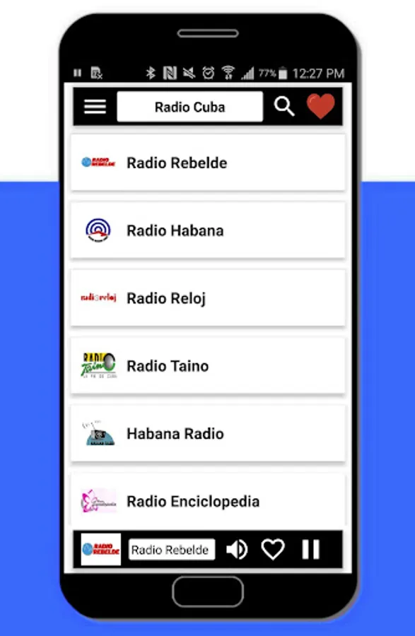 In Radio Cuba you will be able to find all your Cuban radio stations live totally free, this Cuban radio application needs the use of the internet to be able to function, it is not a * Cuban Radio without Internet *, we know that it may bother that it is not so but it is not our problem, this is because modern phones have stopped using radio applications without the internet and they emit many electromagnetic wave signals that can damage the delicate circuits of smart phones, we hope and enjoy our Radio Cuba with all your Cuban radio stations both fm and am live totally free !!!.
