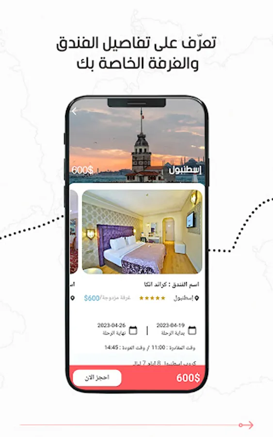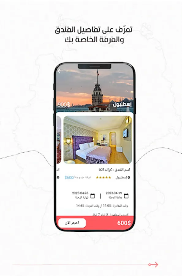 An application that helps travelers choose the best travel program for domestic and foreign trips, by displaying a detailed graphic guide of (hotels, flights, activities, live image, with easy online booking, and 24/7 customer service support, allowing users to compare Prices and quality classification with other tourism programs. It also encourages the domestic tourism trip in Iraq by offering a variety of tourism activities for foreigners wishing to explore Iraq and Iraqi travelers.