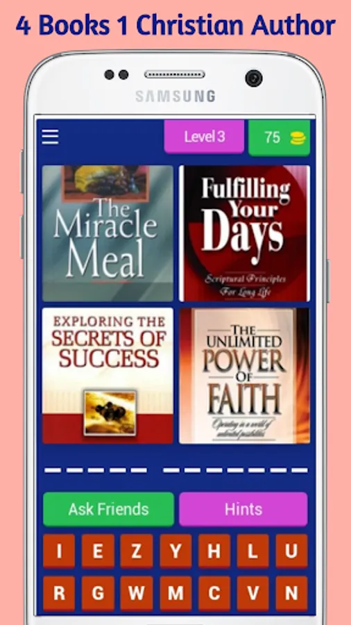 The ORIGINAL 4 Books 1 Christian Author trivia guessing game! 4 Books 1 Christian Author Game is the original 4 Books 1 Christian Author classic guessing game that will entertain you for hours! This crazy fun 4 Books 1 Christian Author quiz game tests your knowledge, logic and reasoning skills to solve simple (and sometimes hard!) 4 Books 1 Christian Author Puzzles!