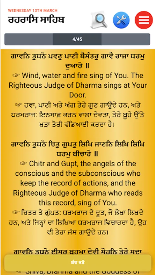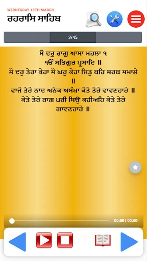 'Rehras Sahib Path' app let you read and listen to 'Rehras Sahib' on your mobile. You can read 'Rehras Sahib Path' in Punjabi, Hindi or English and also can read meaning of path while reading or listening to 'Rehras Sahib Audio'. Purpose of this app is to let busy and mobile young generation reconnect with Sikhism and Gurubani by reading path on mobile. We hope that you will find this app useful and and will use it daily.