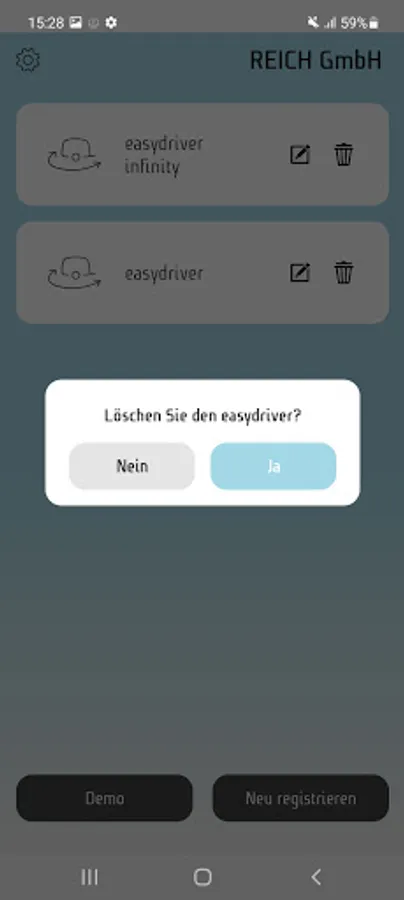Unintentional use of the smartphone app is of course impossible. This is ensured by our clever safety device: An easydriver logo is placed on the left and right at the bottom of the app user interface. This logo must be touched in order to be able to use the direction fields on the display in parallel.
