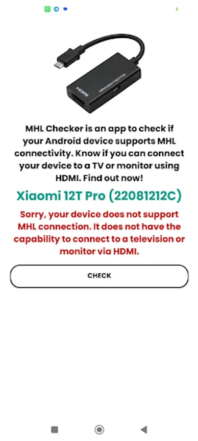 Verification of your device's MHL support: The app performs the necessary tests to detect MHL compatibility on your device and provides you with instant results.