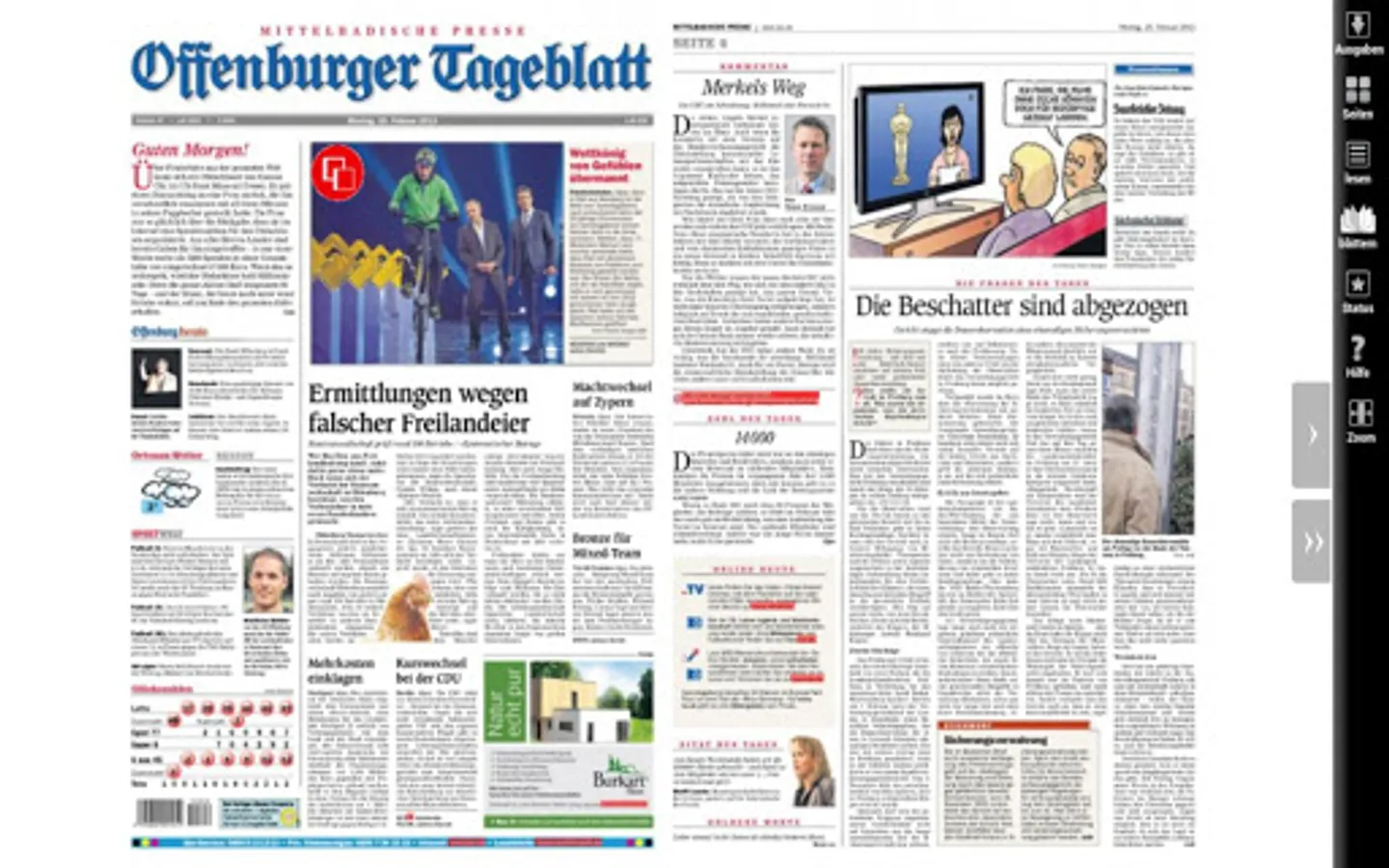 The Mittelbadische Press is organized in five local newspapers, the regional information platform of Ortenau circle. In the separate national section of politics, society, sport and culture of correspondents from around the world are illuminated. The local sections provide detailed information about what is happening on your doorstep.