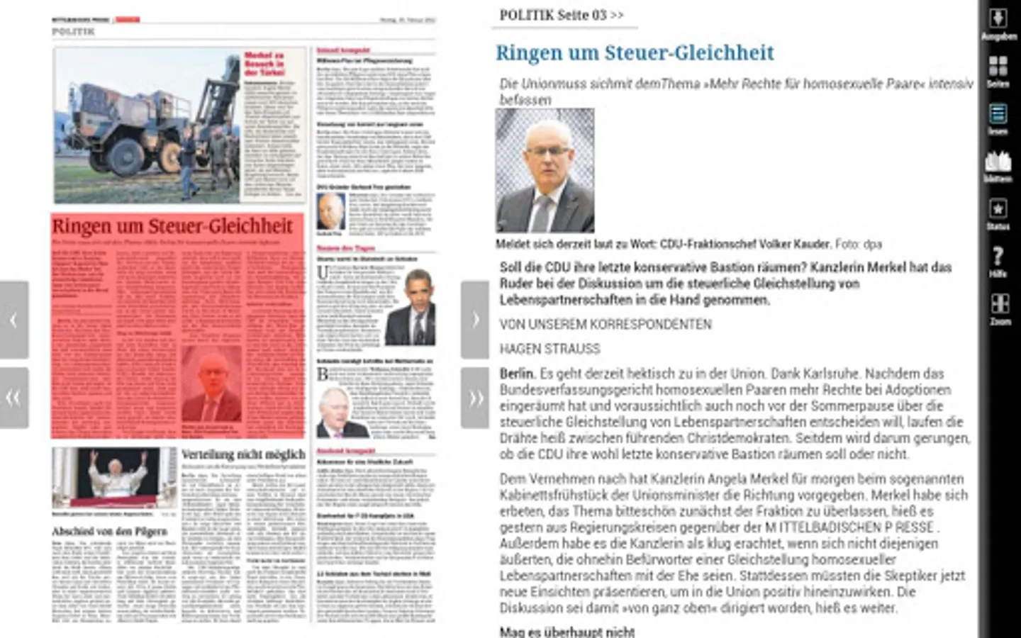 In this app you will find: the Kehler newspaper published in Kehl and Willstätt and their many villages of the Hanau country that Acher Rench newspaper as local issue for Oberkirch and the Rench valley, as well as the space Achern Rheinau Renchen and Appenweier. Lahr as the indicator local information platform Lahr, the Offenburger Tageblatt - Black Forest as the main newspaper and the local edition Offenburger Tageblatt. All issues appear Monday through Saturday with fascinating information, well-researched backgrounds, trenchant commentary, entertainment and tips on everyday purchases. With tangy series and telephone campaigns and special supplements here the reader will find a solution tailored to their needs news selection.