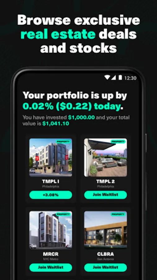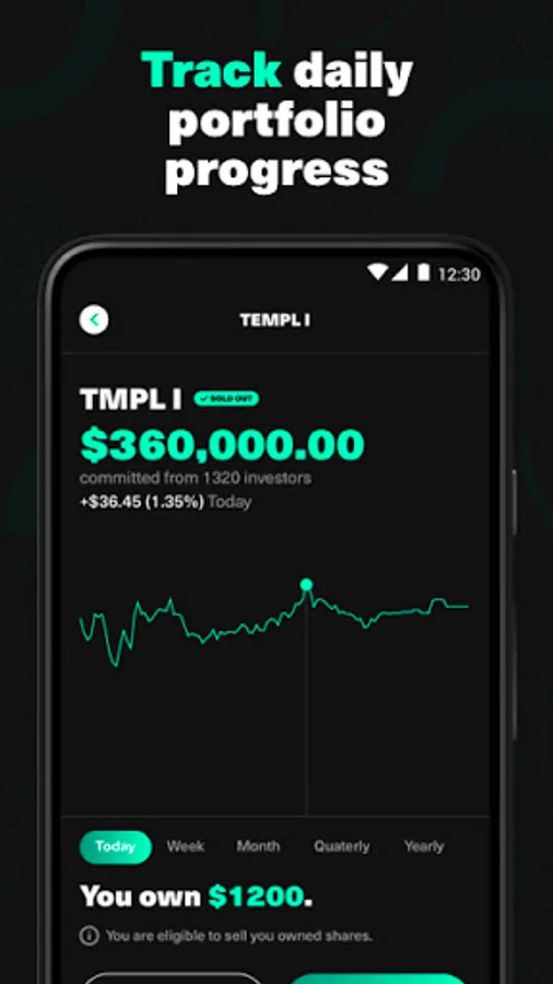 TRACK INVESTMENT: With our app, you can pick and choose the amount you want to buy in each real estate property—and then track the growth of the portfolio over its lifetime.