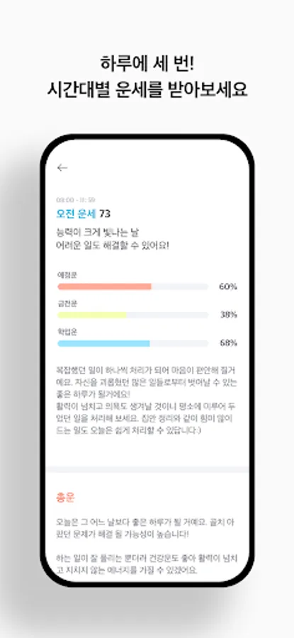 ㆍ Check your horoscope for each hour of the morning, afternoon and evening.