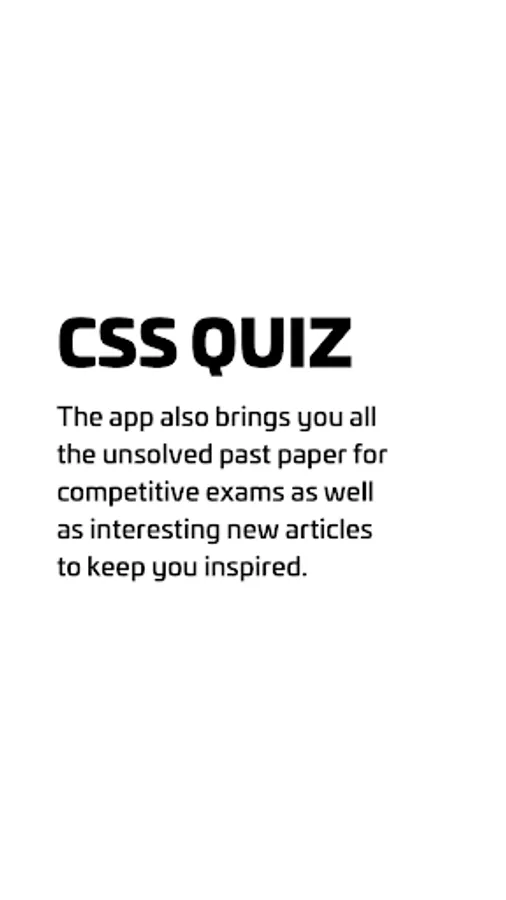 The best ever App for the CSS (Central Superior Services) examination which has almost all subject MCQs to practice anywhere and anytime. Through this App it is made possible for them to cram these MCQ's by using their smart phones.