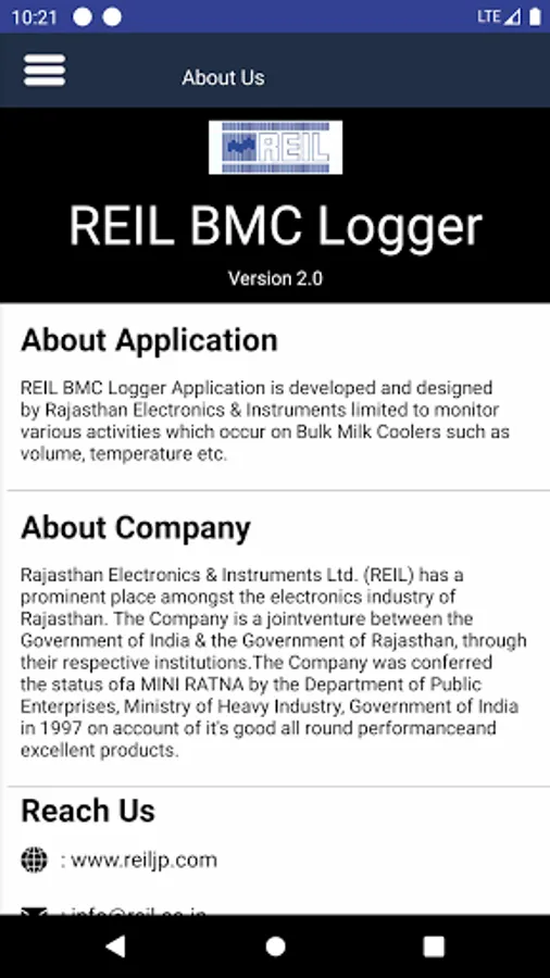 BMC Logger Application developed and designed by Rajasthan Electronics & Instruments limited to monitor various activities which occur on Bulk Milk Coolers such as volume, temperature etc.