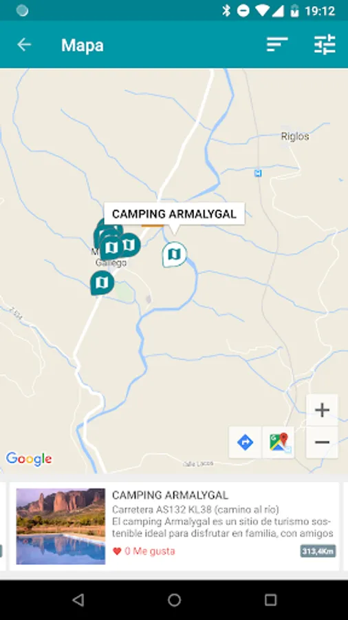 All the points are geopositioned on GoogleMaps, indicating the route to follow to reach each one of them.