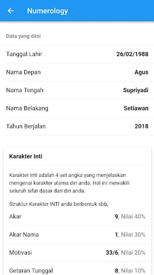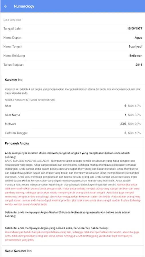 With simple language, this application is very easy to read, even if you have no special knowledge of Numerology. This application is designed to be intuitive for general use and are accompanied by the ratio of the suitability of the name and date of birth, as well as the annual rate of your life's journey.