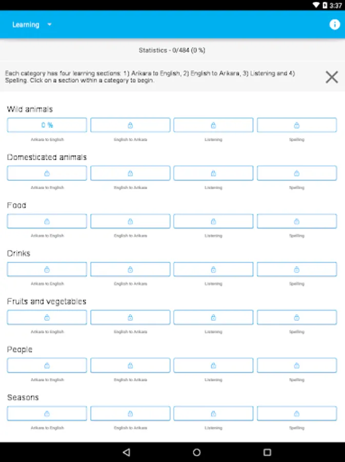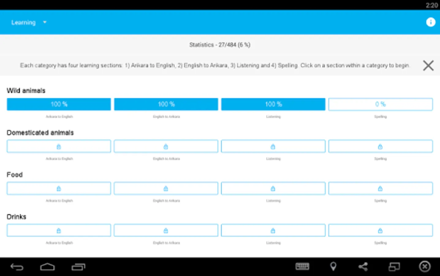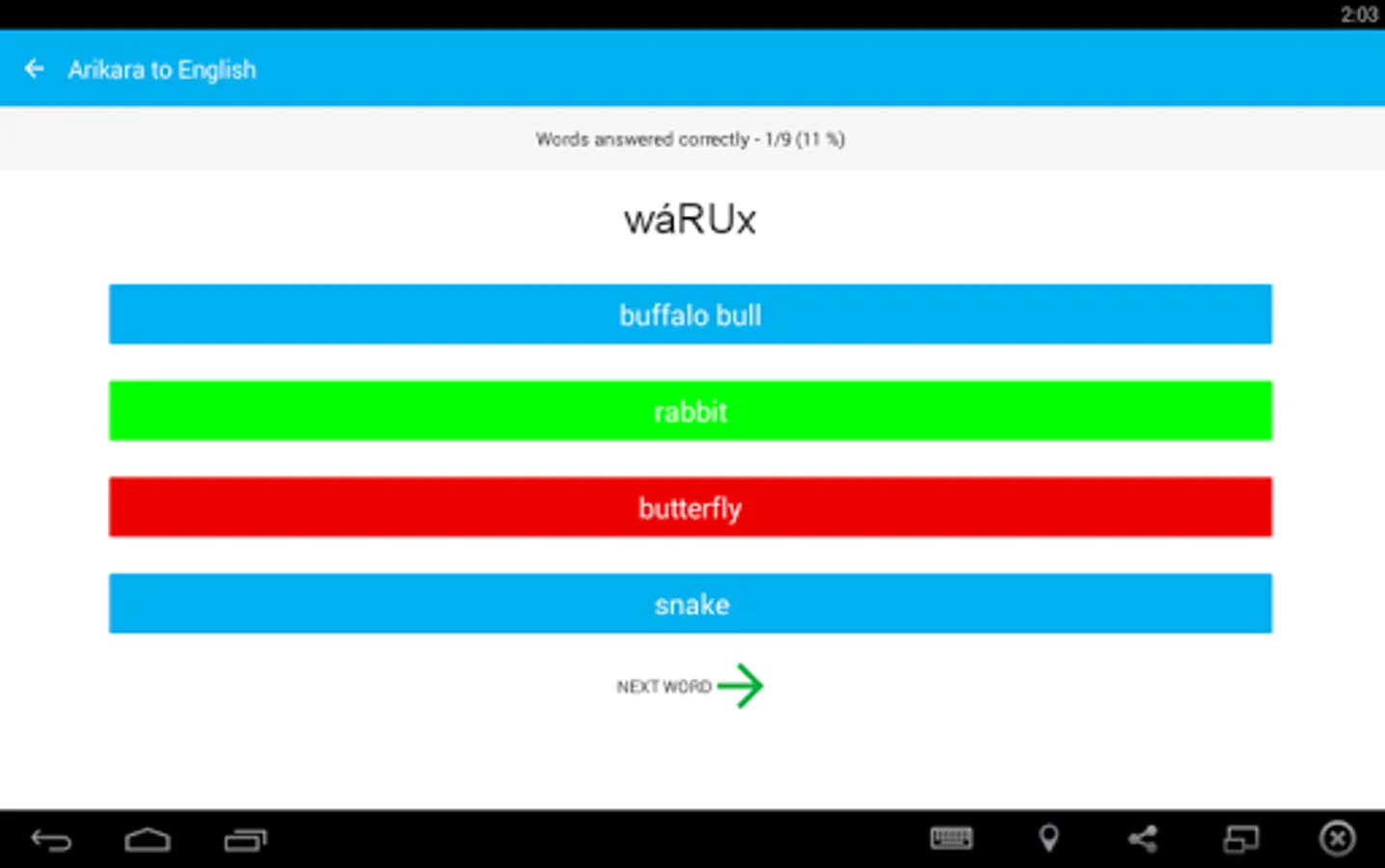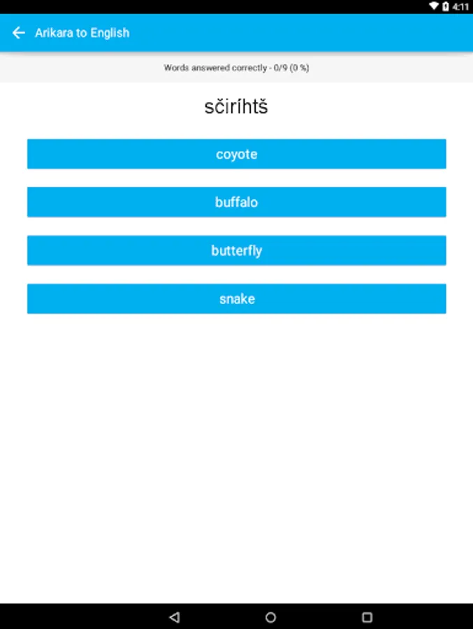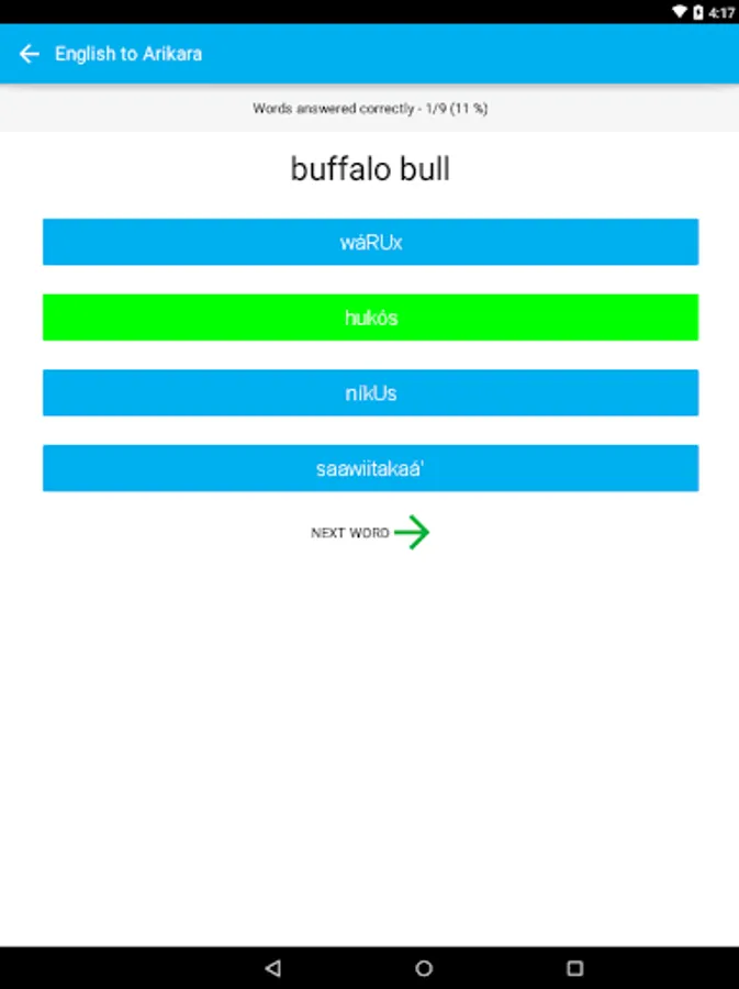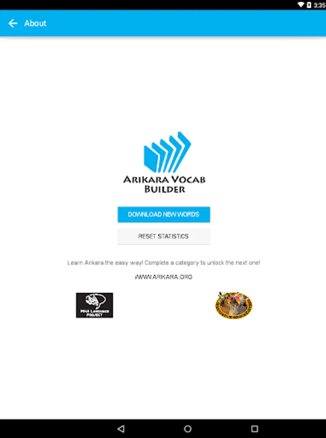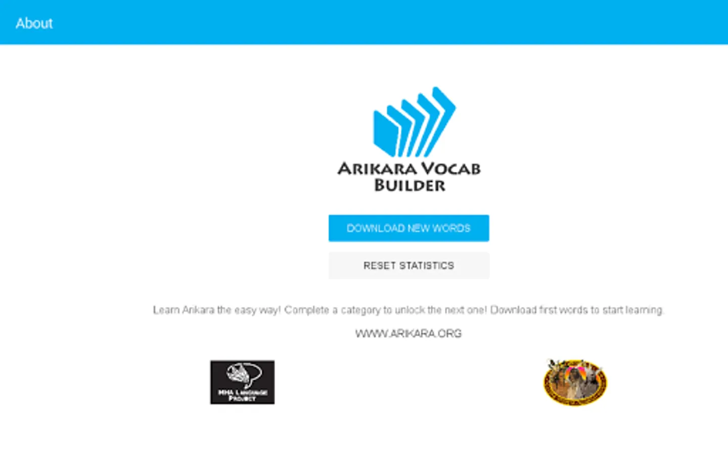 After downloading and opening the app, choose ‘Download New Words’ to get started on learning Arikara vocab!