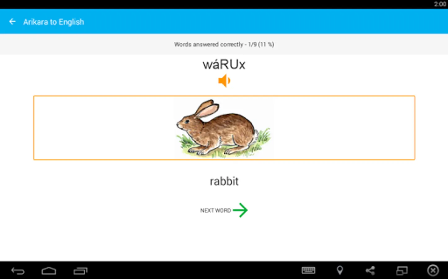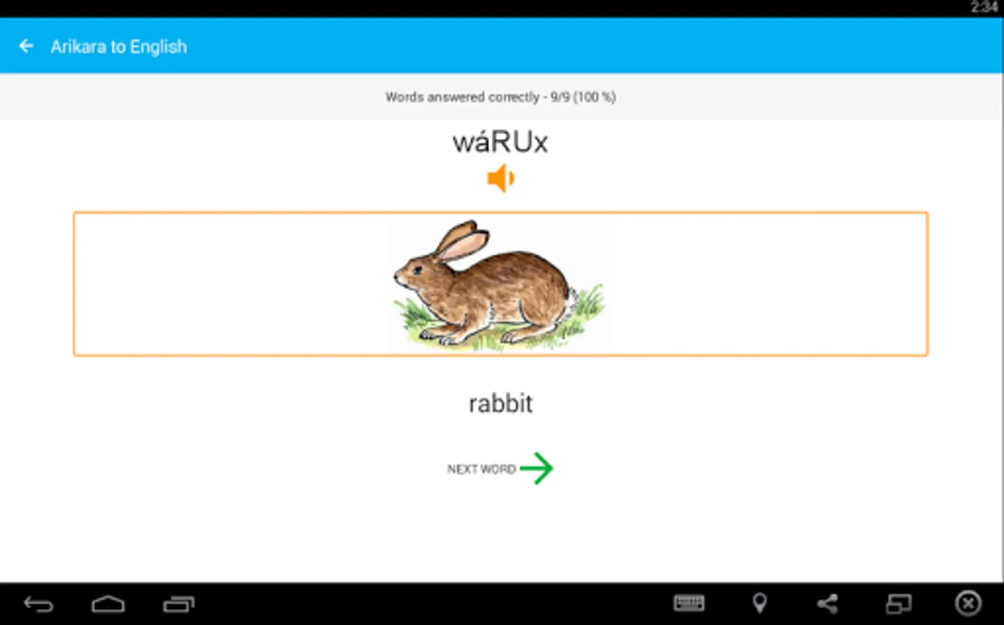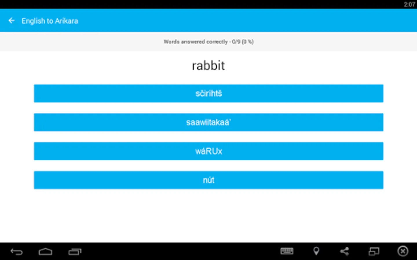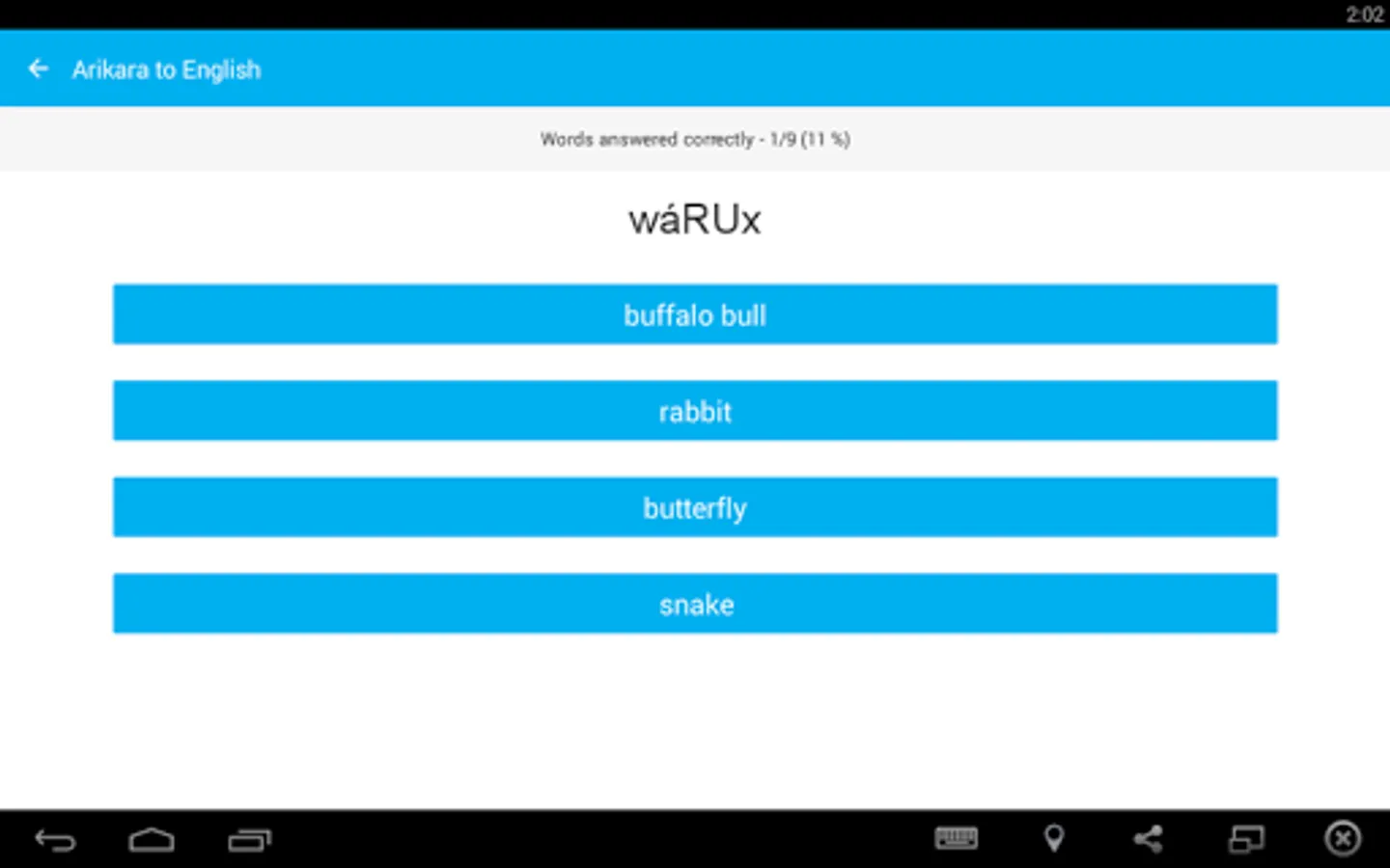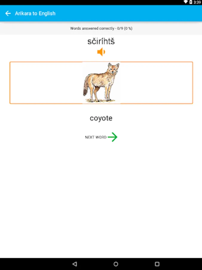 Build your Arikara vocabulary with the Arikara Language Project’s FREE vocabulary game for your Android phone or tablet. Quiz yourself every day to learn different categories – wild animals, food, drinks, and more! The free version of the app includes: