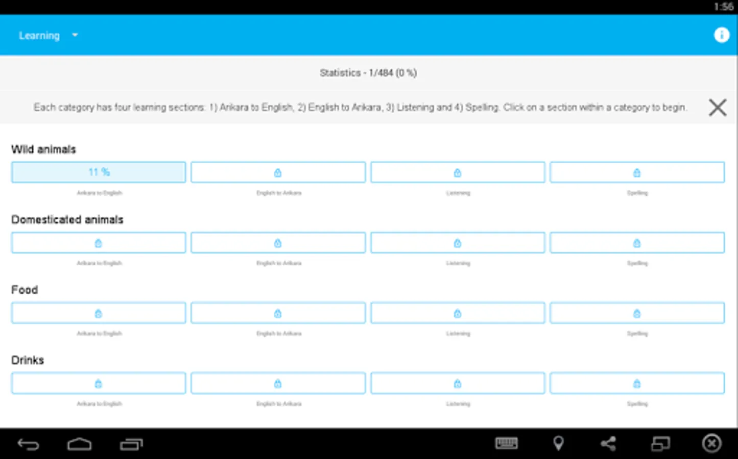 ➢ Track your progress and review words you’ve learned by category or activity