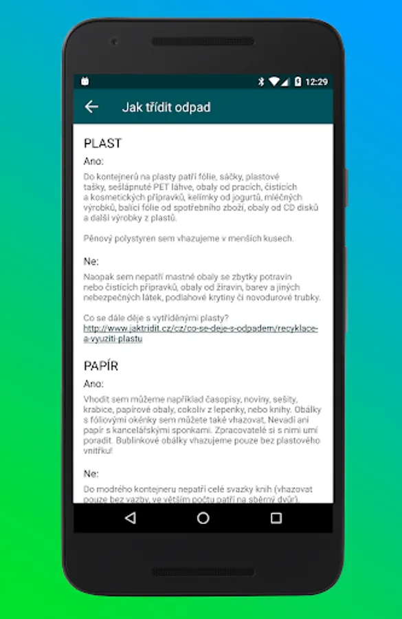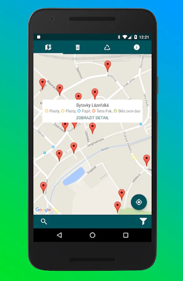 The mobile application allows you to report a crowded or damaged container in your city. The application also provides complete information about recycling.