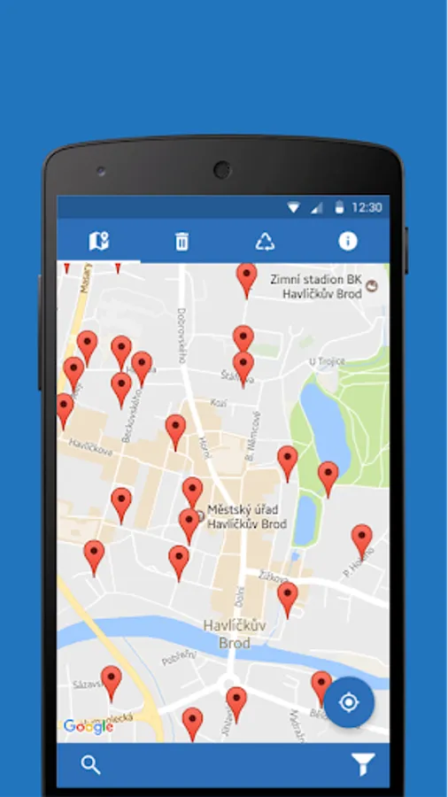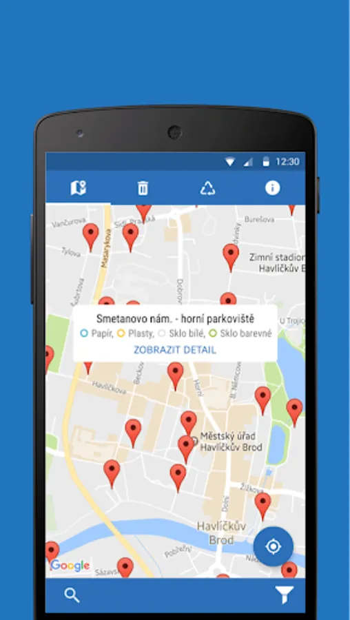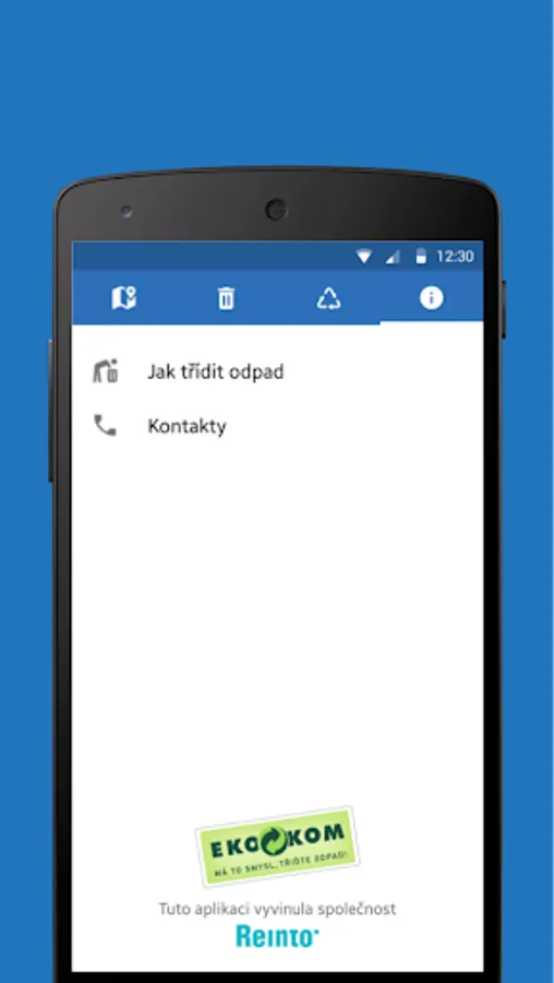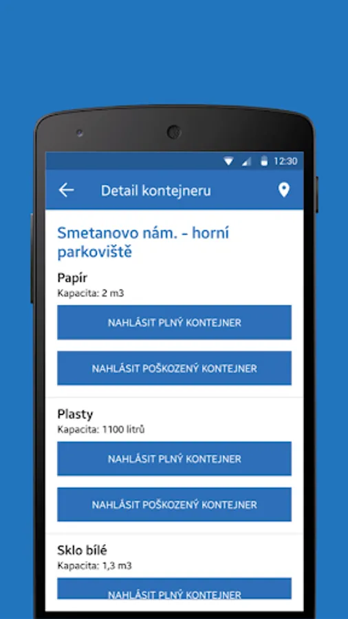 The mobile application allows you to report a crowded or damaged container in your city. The application also provides complete information about waste sorting.