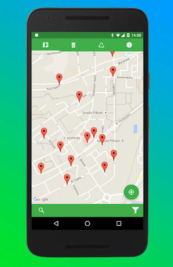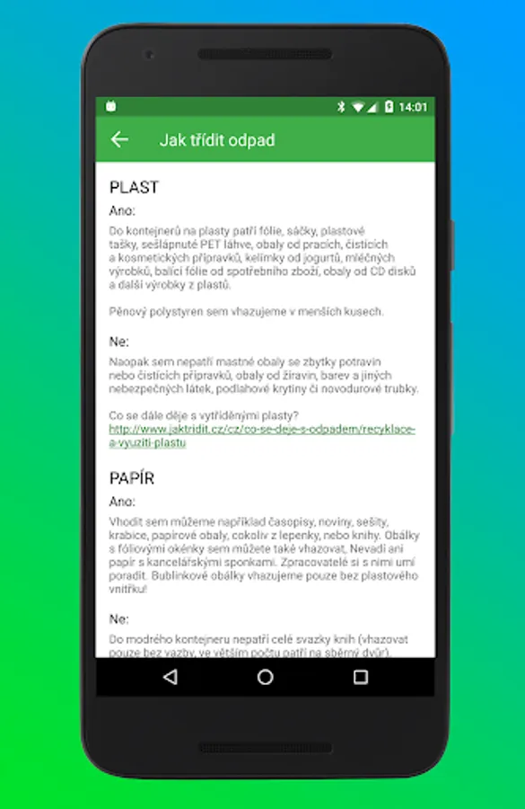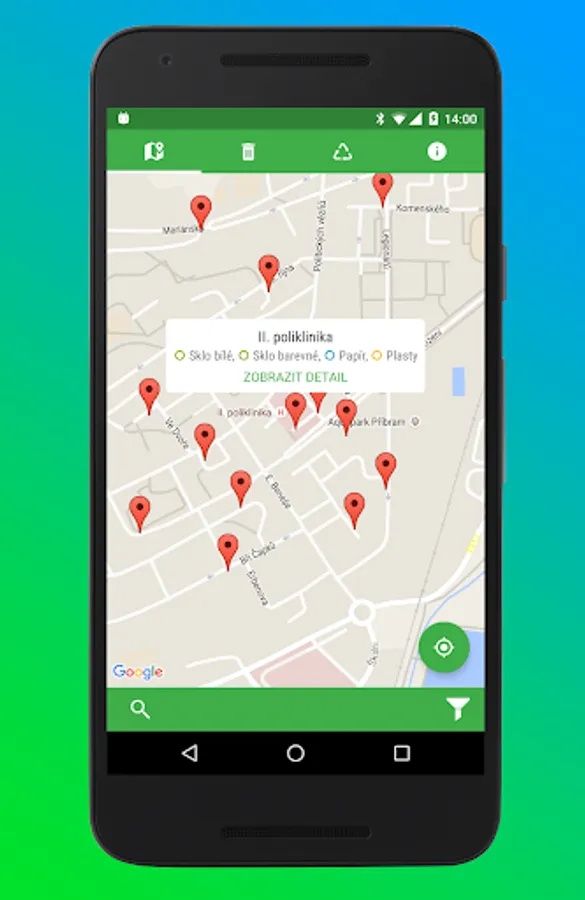 The mobile application allows you to report a crowded or damaged container in your city. The application also provides complete information about recycling.