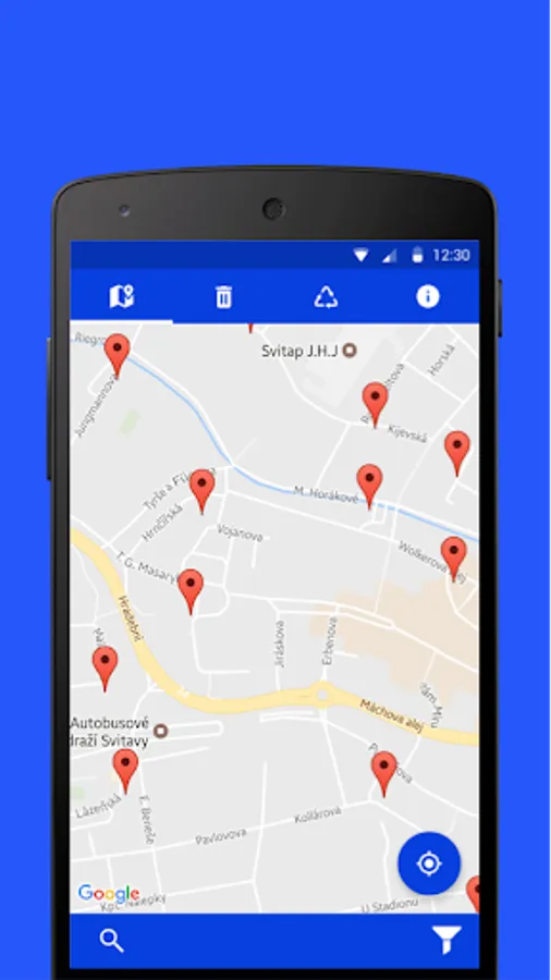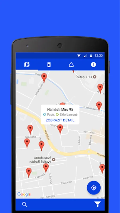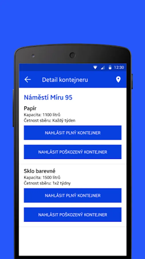 The mobile application allows you to report a crowded or damaged container in your city. The application also provides complete information about waste sorting.