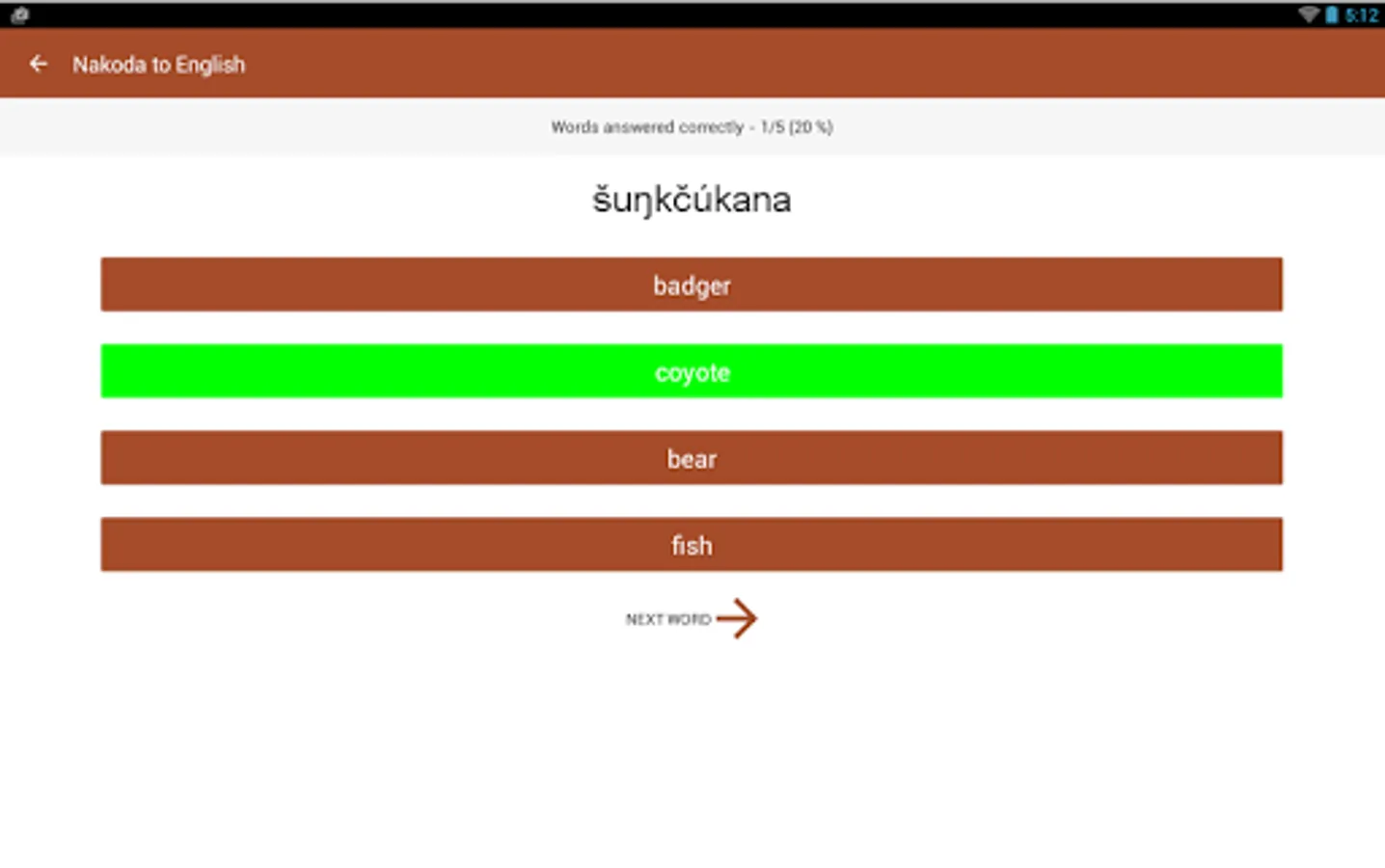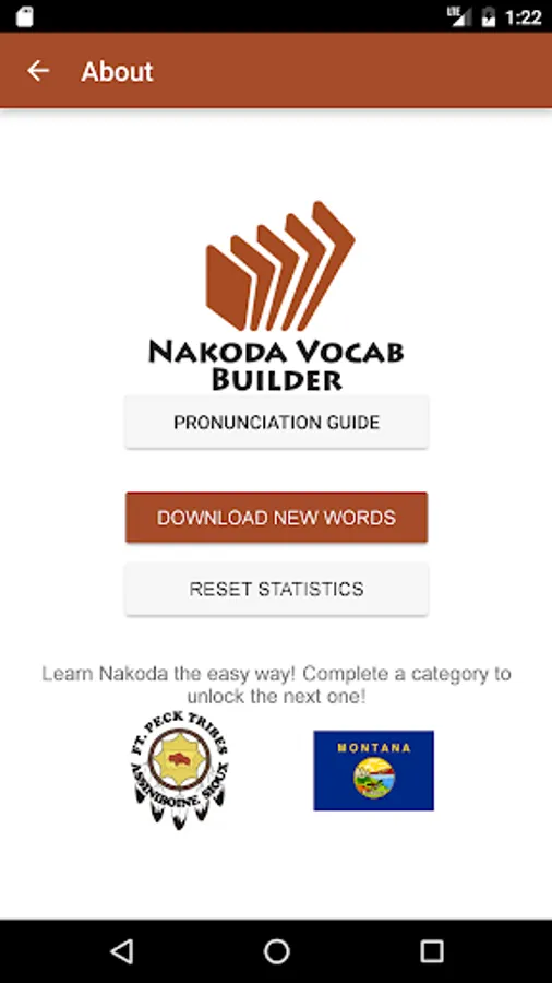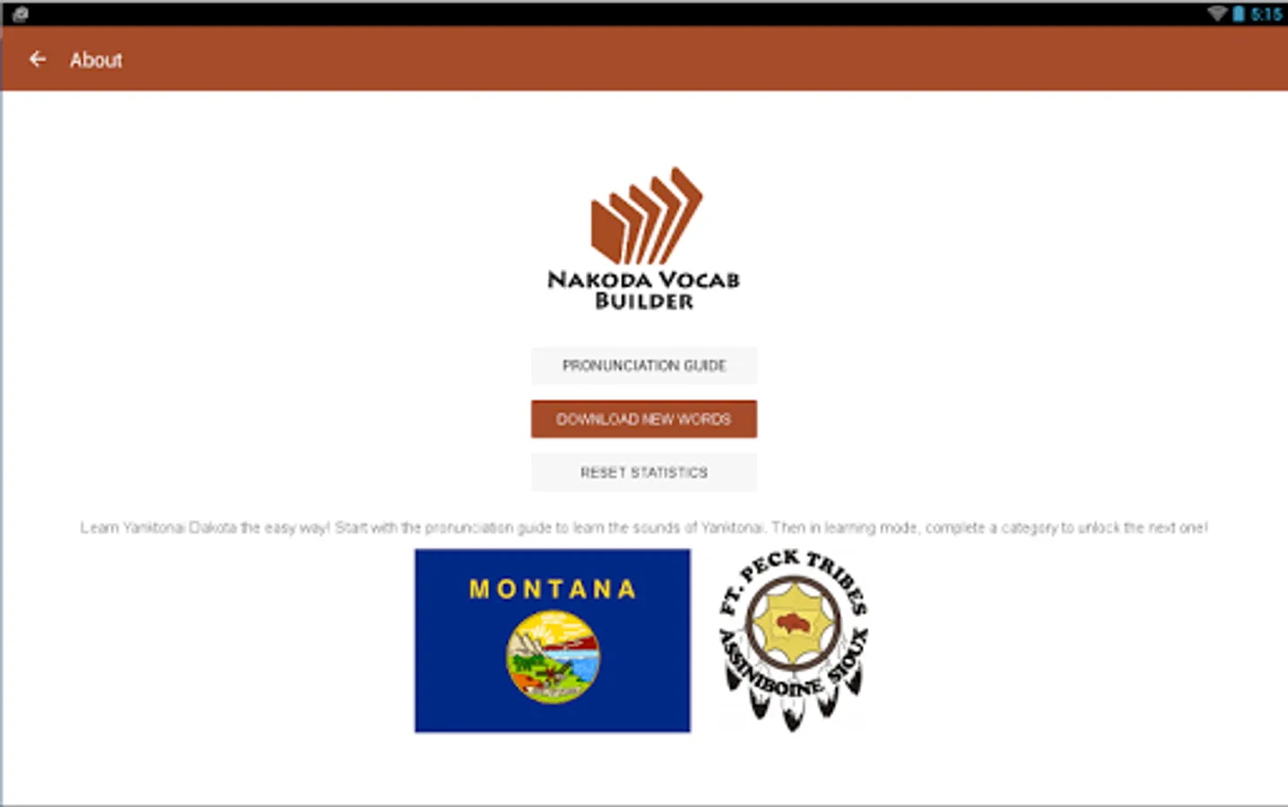 Build your Nakoda vocabulary with Fort Peck Language and Culture Department’s FREE vocabulary game for your Android phone or tablet. Quiz yourself every day to learn different categories – wild animals, food, drinks, and more! The app includes: