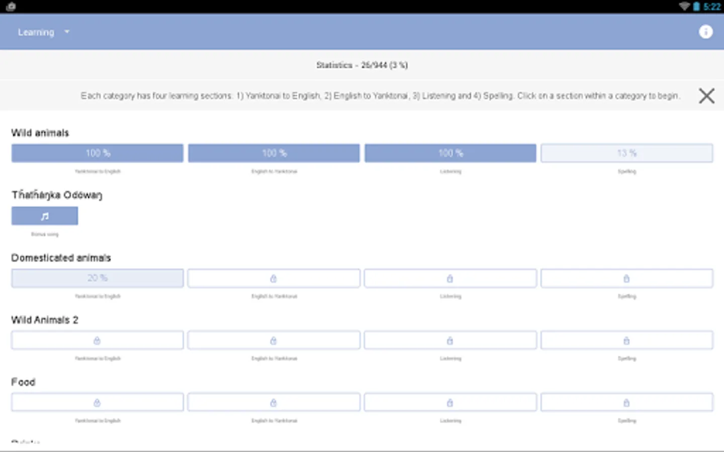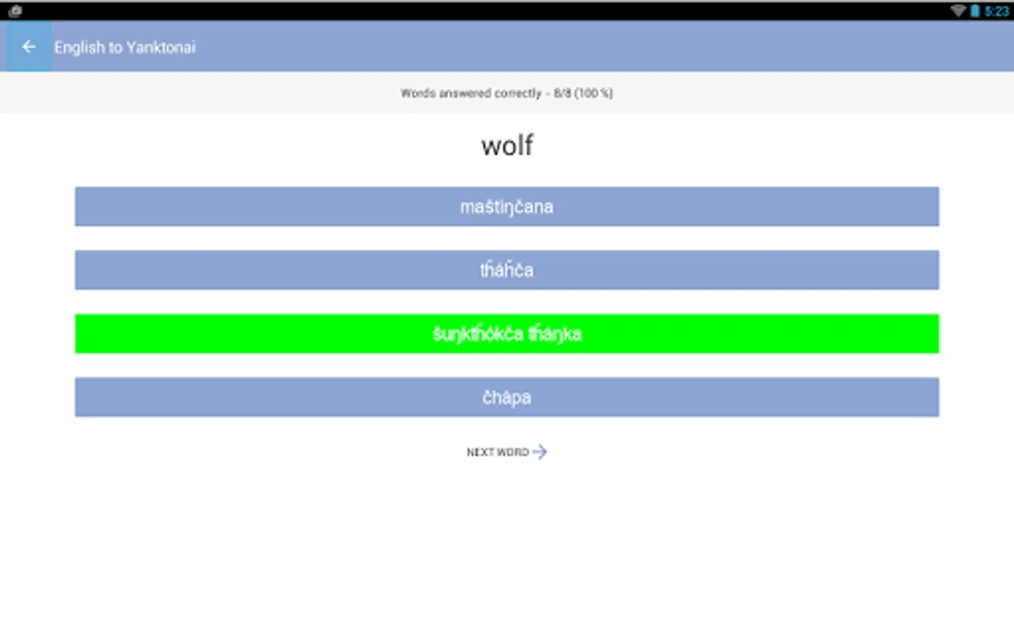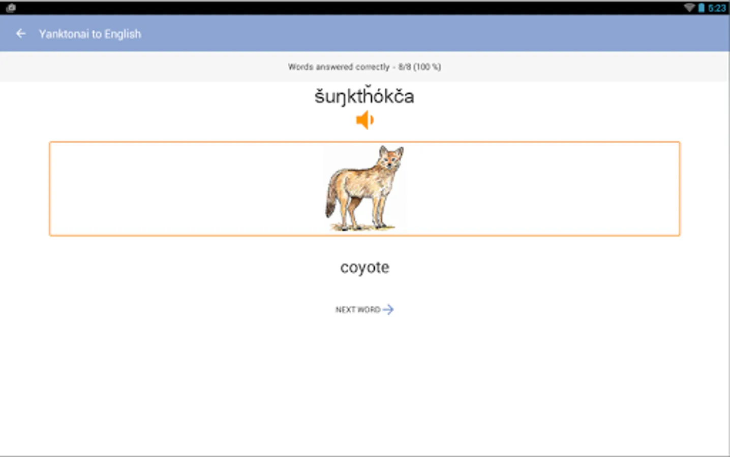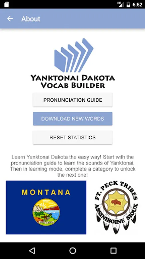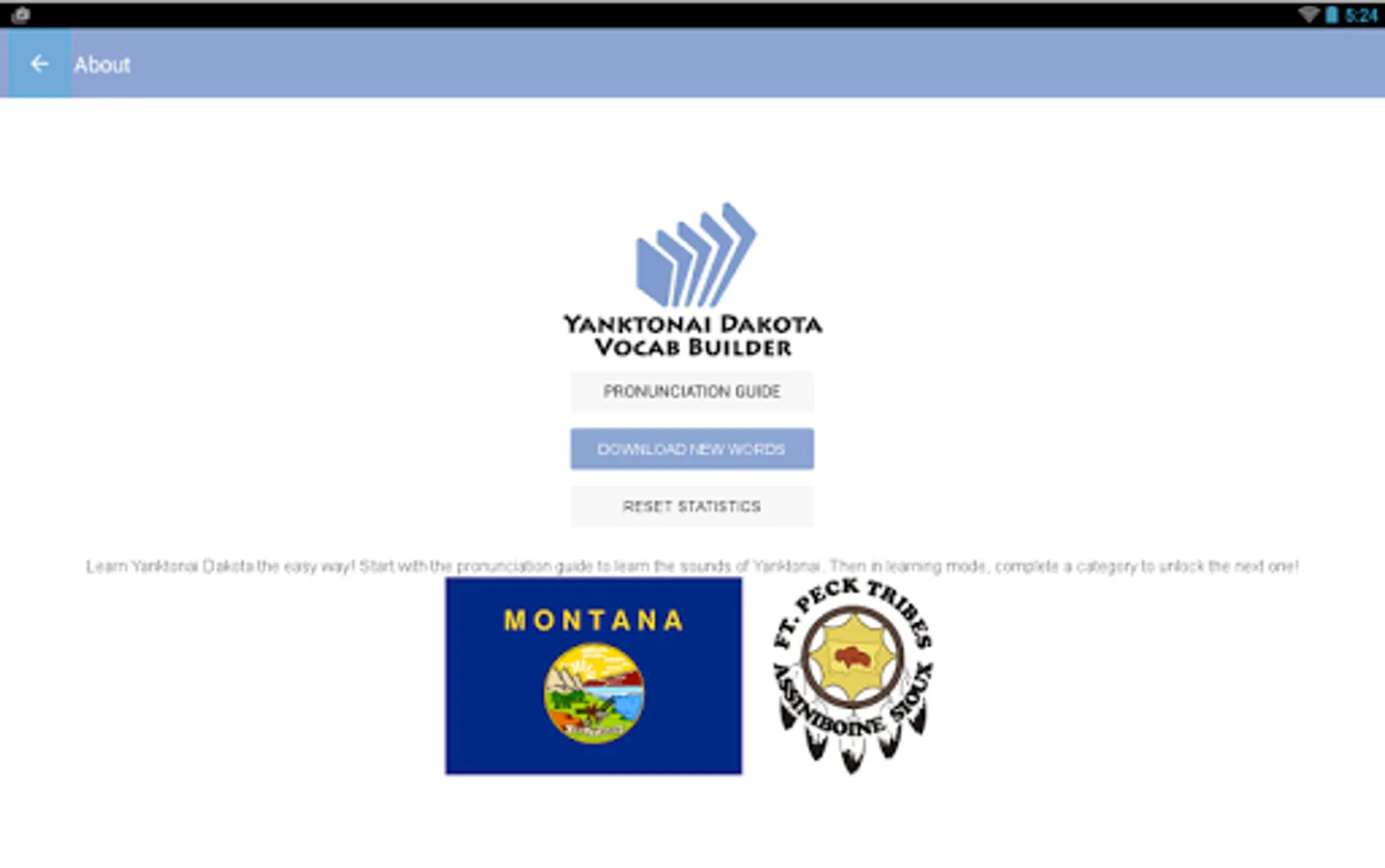 Build your Yanktonai Dakota vocabulary with the Fort Peck Language and Culture Department’s FREE vocabulary game for your Android phone or tablet. Quiz yourself every day to learn different categories – wild animals, food, drinks, and more! The app includes: