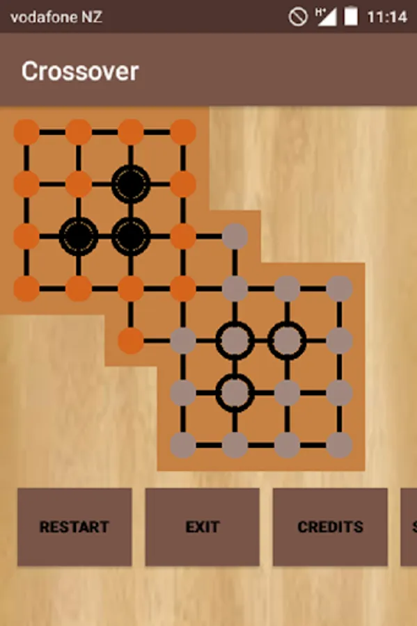 Move the black and brown 'pegs' to the other side of the board, making sure to put the black pegs in holes surrounded with black.