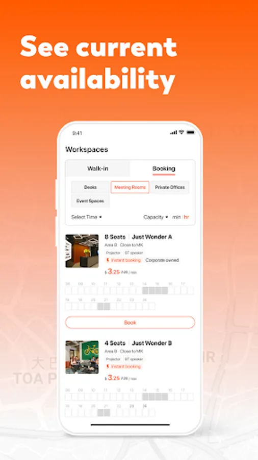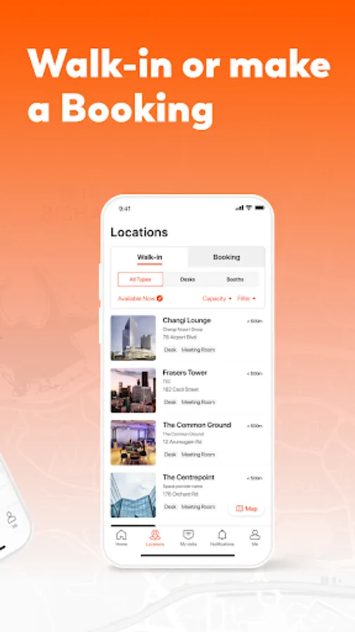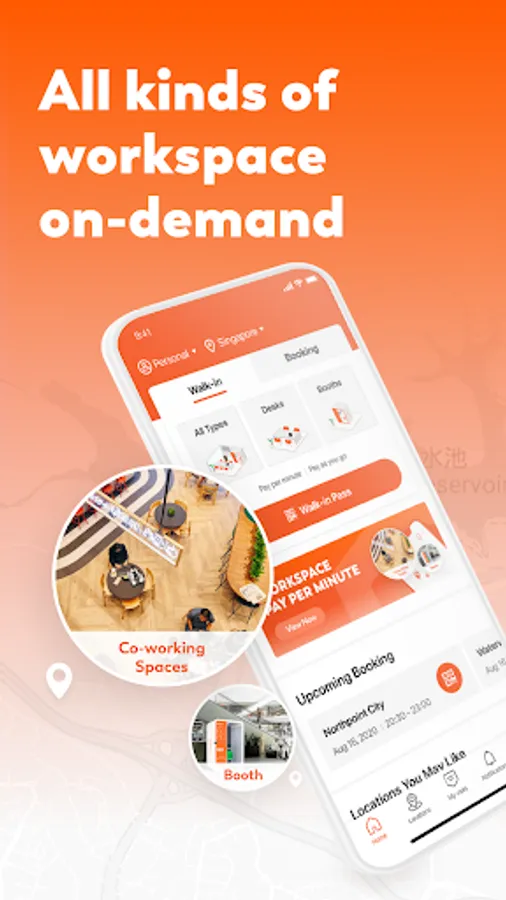 Access thousands of desks, meeting rooms, private offices, private work booths, hot desk areas in shopping malls and shops via one convenient app showing you the space availability in real time. No more keycards, contracts or subscription fees.