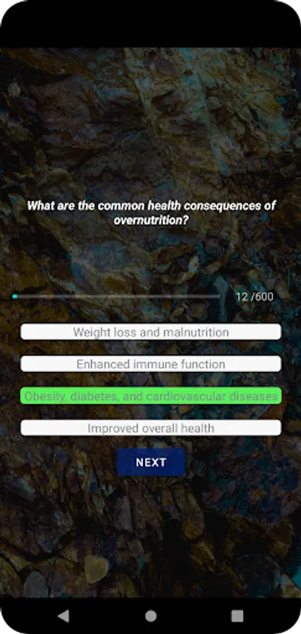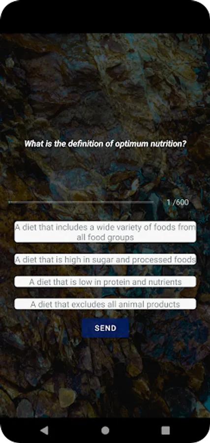 Featuring a user-friendly interface and visually appealing graphics, this quiz app provides a fun and interactive way to learn about nutrition. Each question is presented in a multiple-choice format, allowing users to choose the correct answer from four options.
