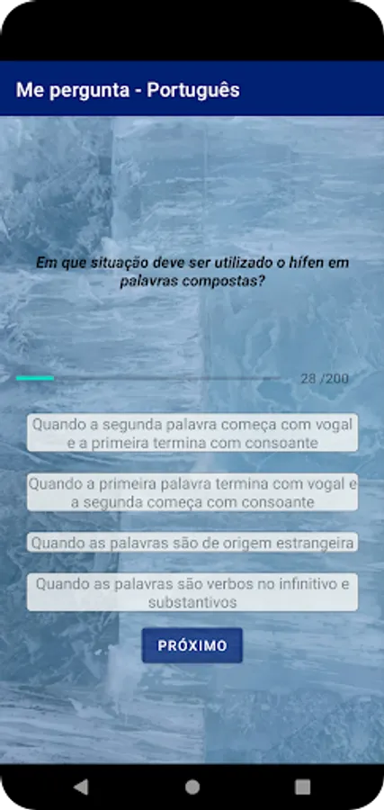 The Ask Me! Português is a Portuguese quiz app that offers a fun and challenging experience for anyone looking to learn or improve their knowledge of the Portuguese language. Ideal for students, teachers, concurseiros and for all those who want to improve their written and oral communication. With a variety of questions, the application allows the user to test their skills in different areas of grammar, such as spelling, semantics, syntax and more. The app is also great for those preparing for civil service exams, as it offers a wide variety of questions of different difficulty levels, giving users an opportunity to test their knowledge and improve their performance on Portuguese questions. The Ask Me! Portuguese is easy to use, with an intuitive and friendly interface, allowing the user to learn and have fun anywhere and anytime.