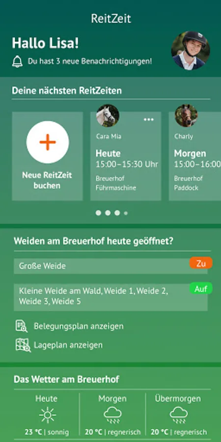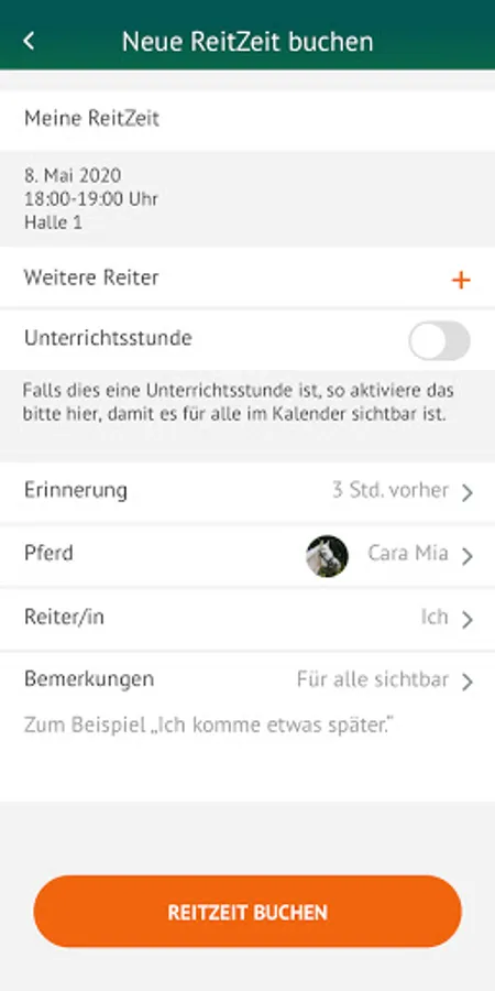 Be informed about what's going on in your riding stable anytime, anywhere. No more overcrowded riding arenas, occupied lunging circles or full paddocks. The ReitZeit app ensures better cooperation on every riding facility.