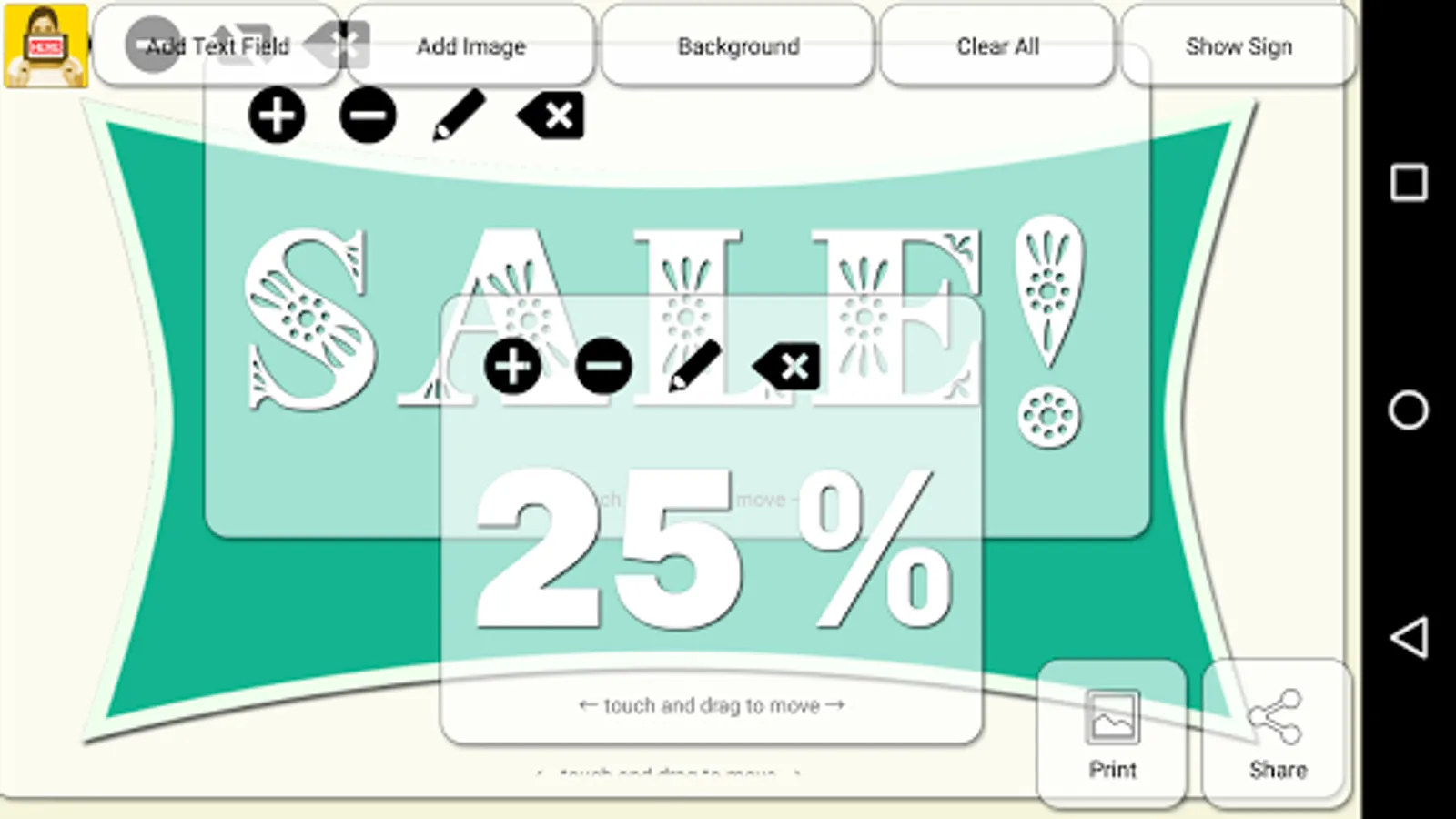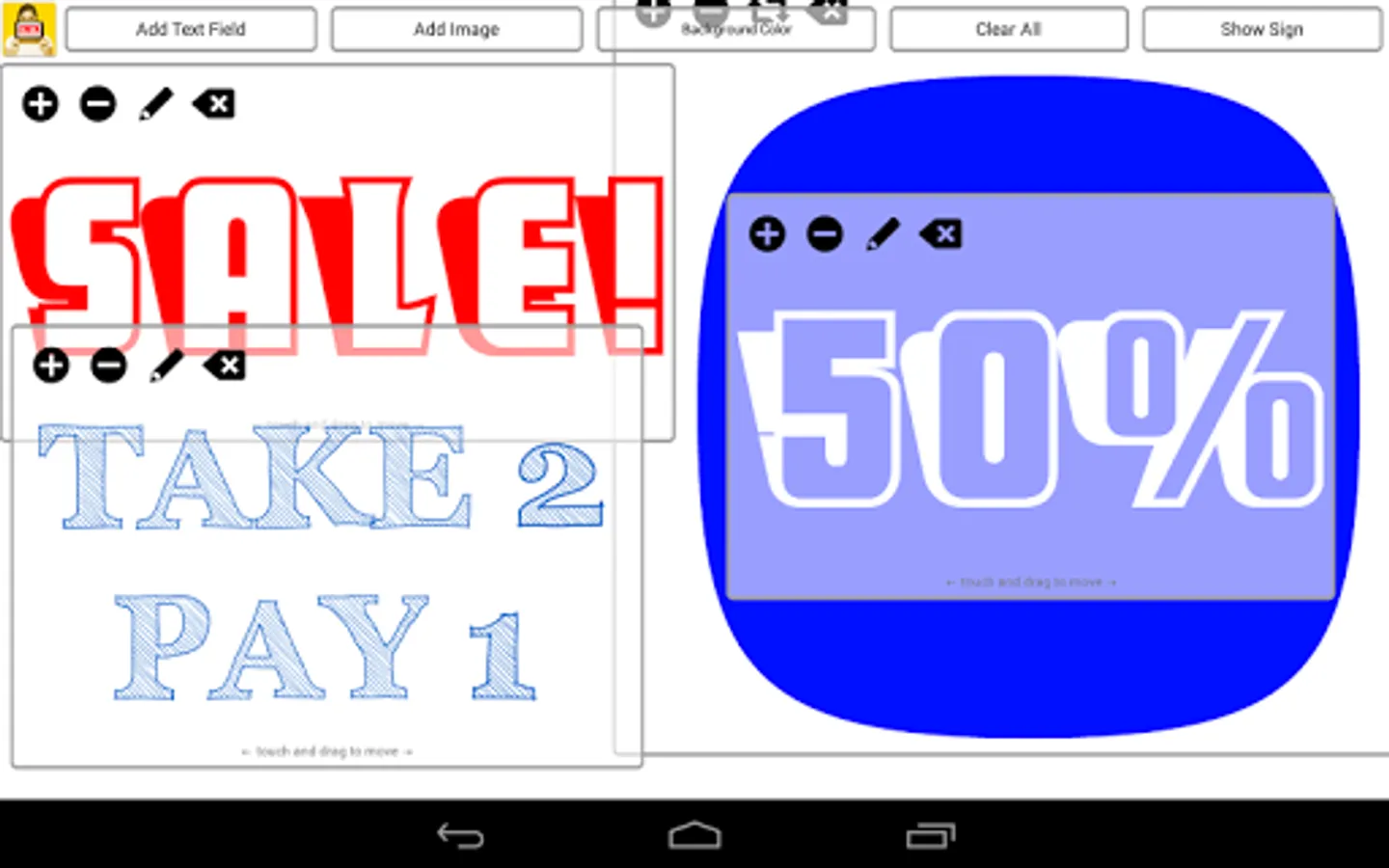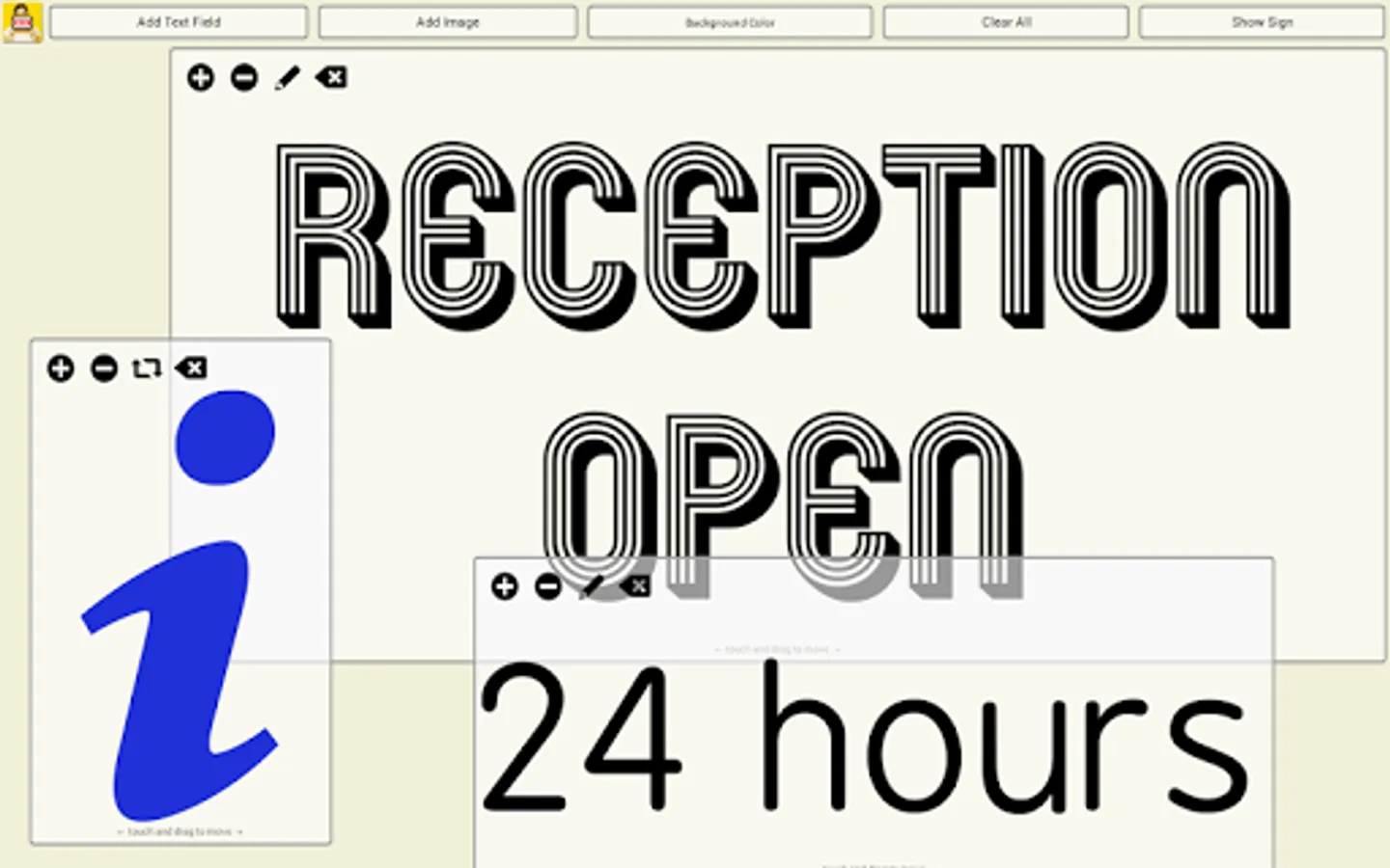 With Your Sign Here, you can use your phone or tablet like a digital sign to show the information you want. You can also share and print your creations.