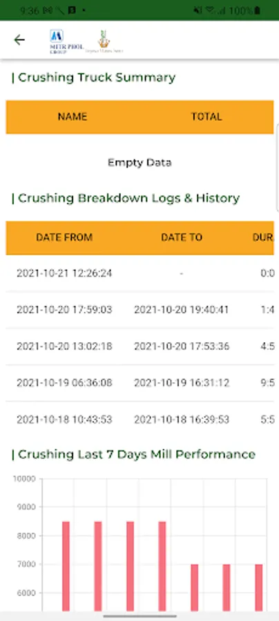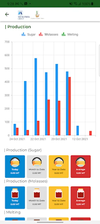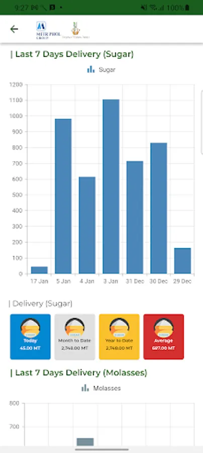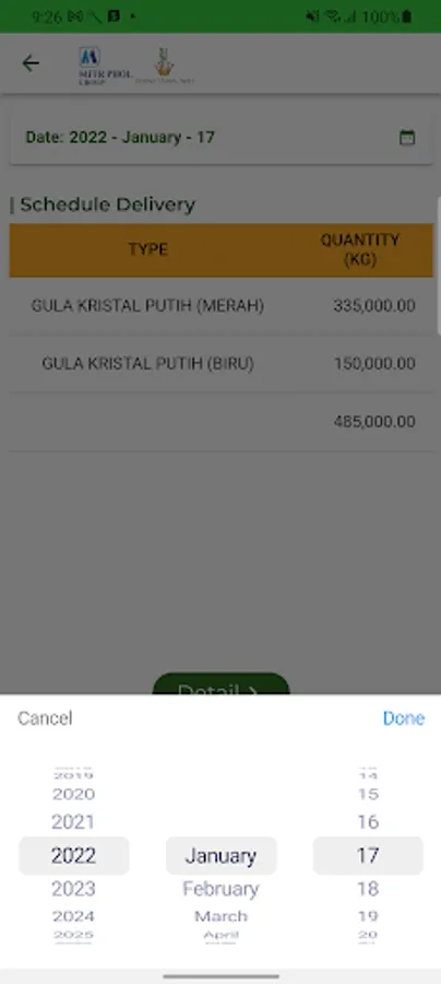 Dashboard application of PT Rejoso Manis Indo for monitoring schedule delivery, delivery, stock, production, receive and crushing.