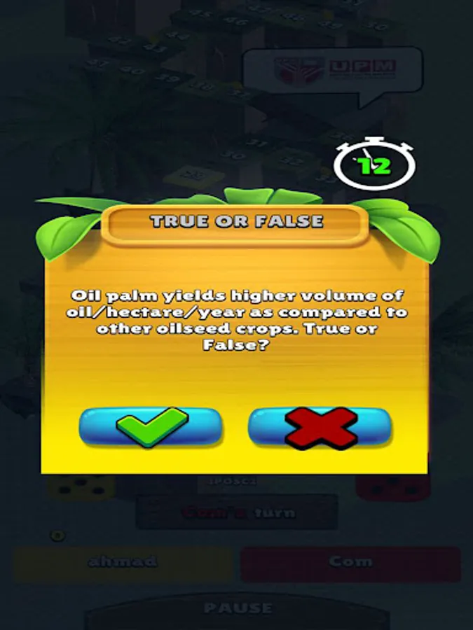My Sawit Adventure is a collaboration between Universiti Putra Malaysia (UPM) and Malaysian Palm Oil Council (MPOC) to elevate palm oil knowledge in higher education institute. Throw the dice, climbed the ladder but watch out for slippery oil as player climbs higher. There will be scientific questions in various categories such as Chemistry, Nutrition, Processing, Sustainability and more to challenge your knowledge.