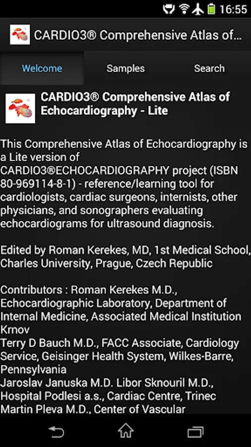 This app is our first Android - Lite version of CARDIO3® Comprehensive Atlas of Echocardiography (ISBN 80-969114-8-1) - reference/learning tool for cardiologists, cardiac surgeons, internists, other physicians, and sonographers evaluating