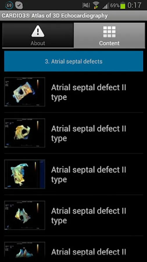 CARDIO3® Atlas of Three-dimensional Echocardiography - reference/learning tool for cardiologists, cardiac surgeons, internists, other physicians, and sonographers evaluating 3D echocardiograms for ultrasound diagnosis.