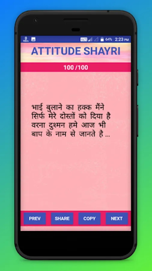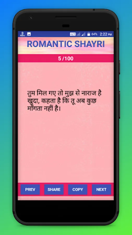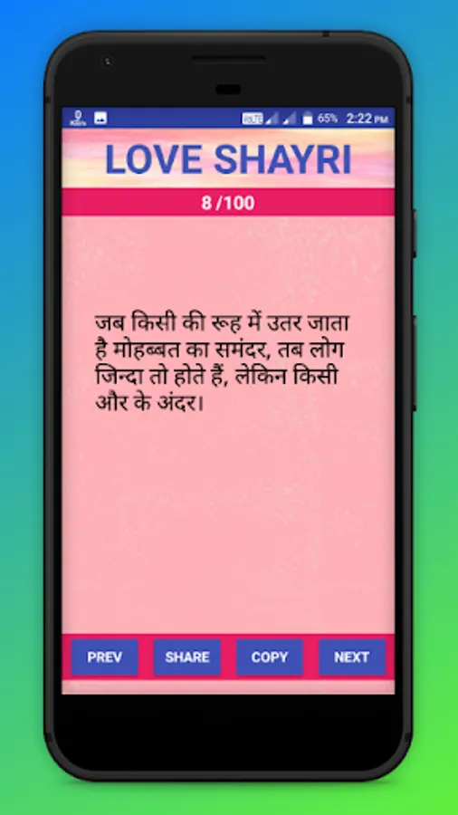 Hello shayari lovers this app provides you a best collection of heart touching shayari, Shayari which will make you laugh and other different popular catagories of shayari. All shayaries are offline so no need of internet connection to use this app.