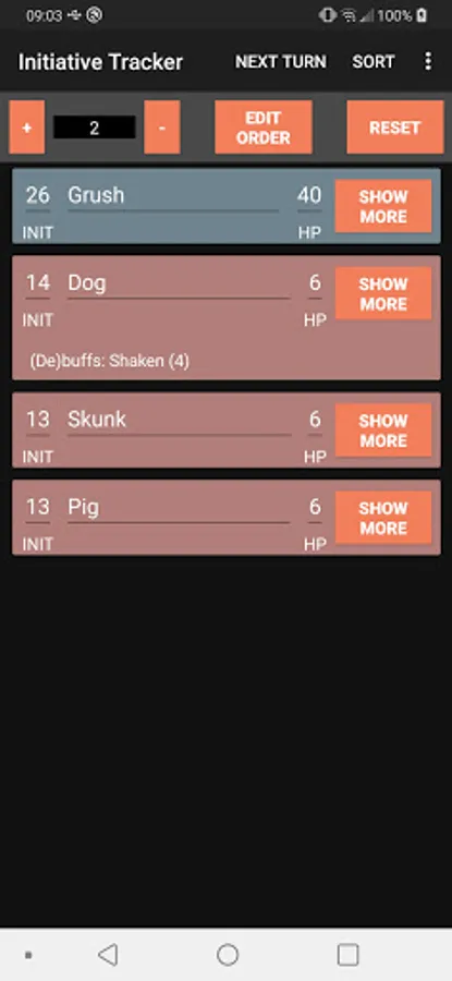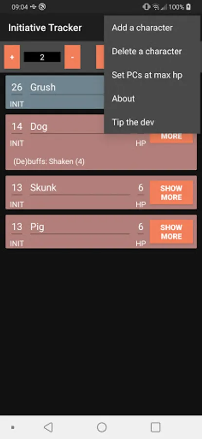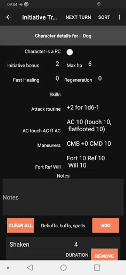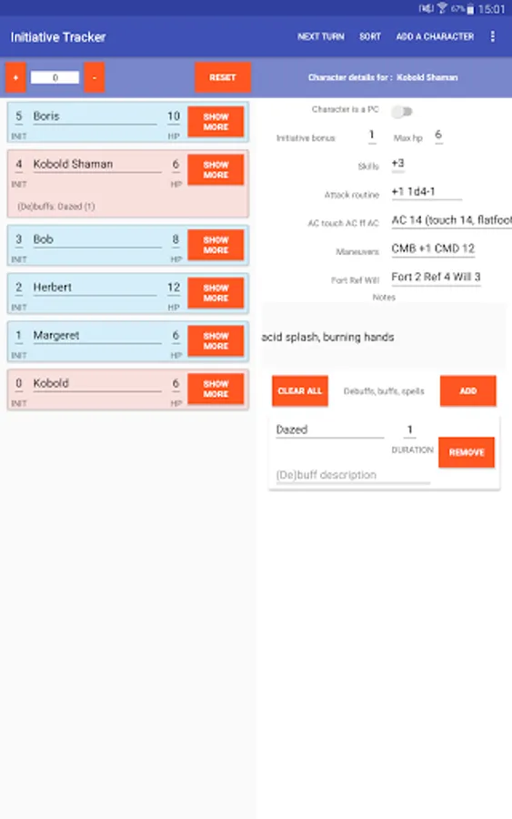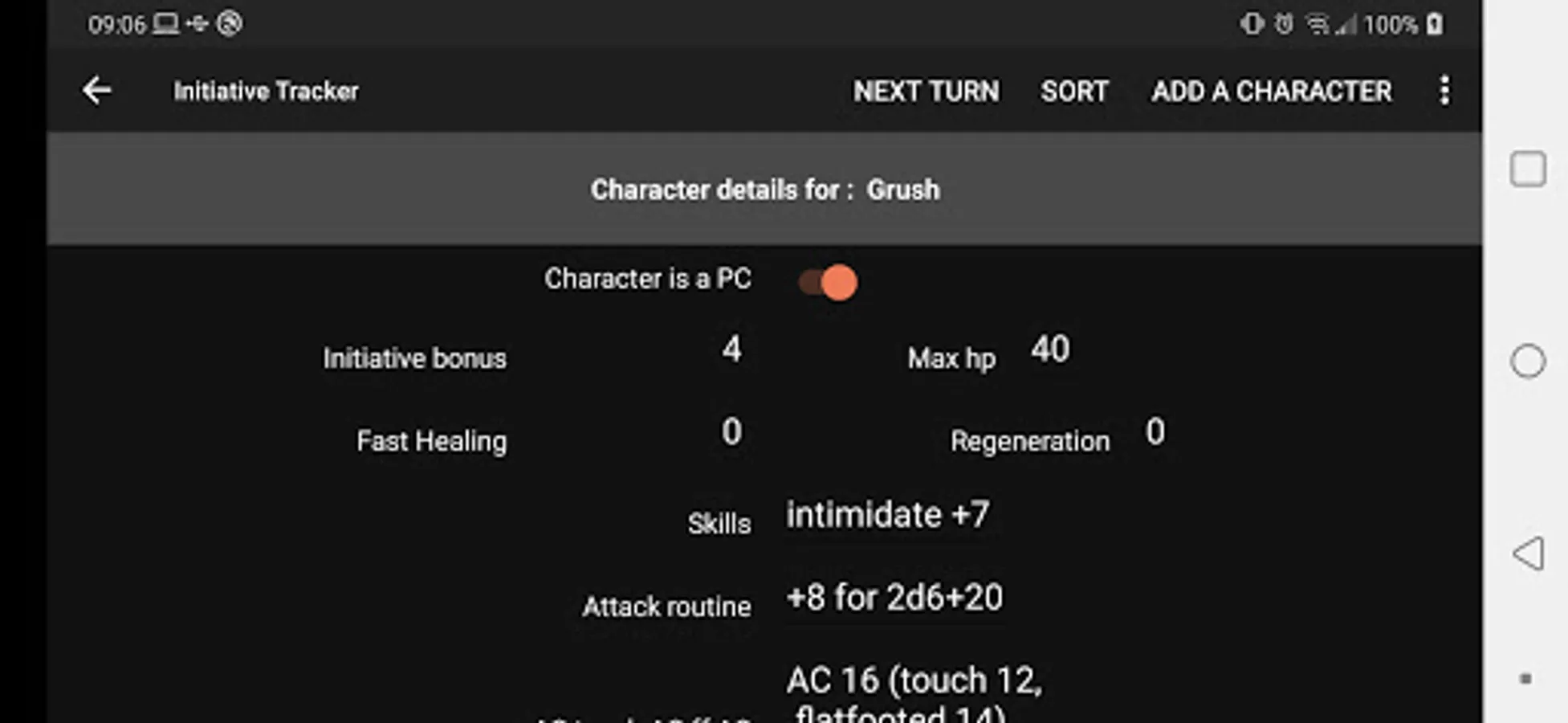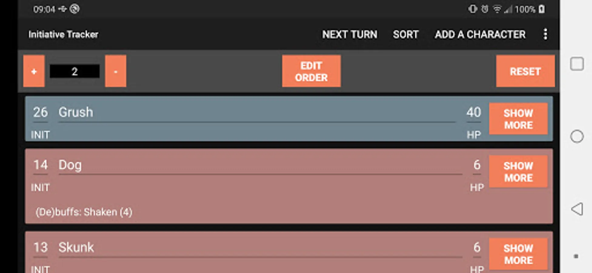 An initiative tracker that allows you to manually add the initiative, name, hp, notes, and number of rounds for (de)buffs and spells and more.