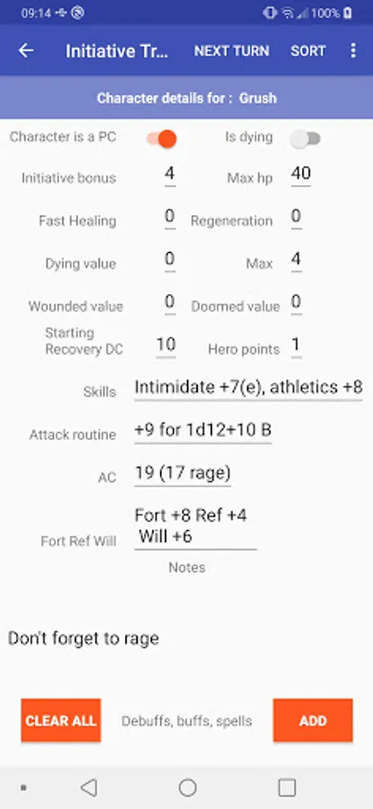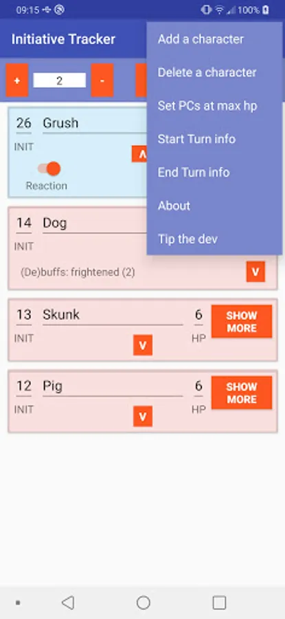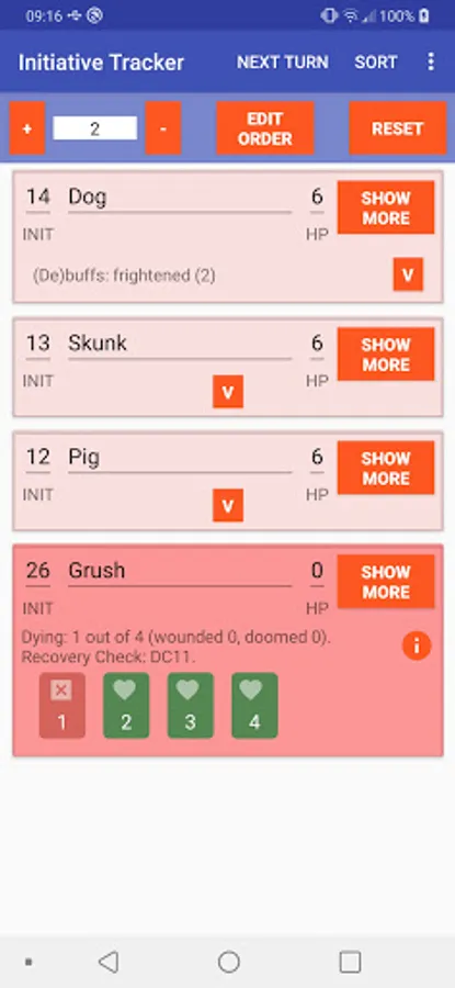 Pathfinder 2 Combat Tracker Screenshots