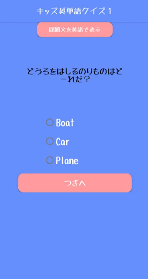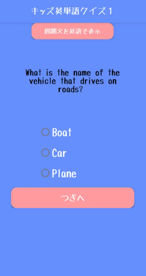 All questions and answers are written in hiragana. If you select an English word, the Japanese translation will be displayed.