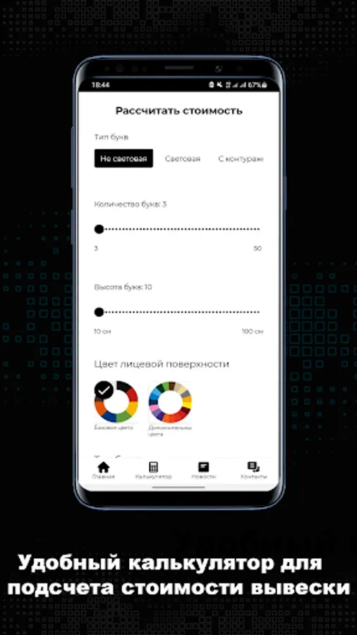 The mobile application "Advertising Center" will help you calculate the approximate cost of a sign, study various information about signs, and also leave a request for feedback. Use now!