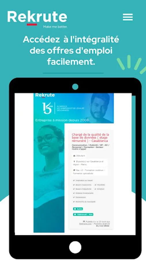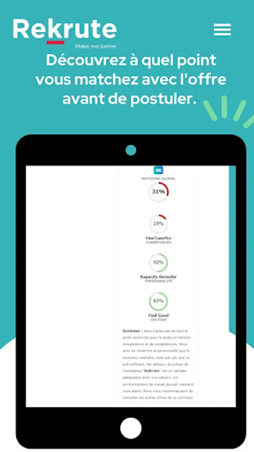 - Technology because it is our vital organ: you will thus find on ReKrute an integrated and completely optimized solution,