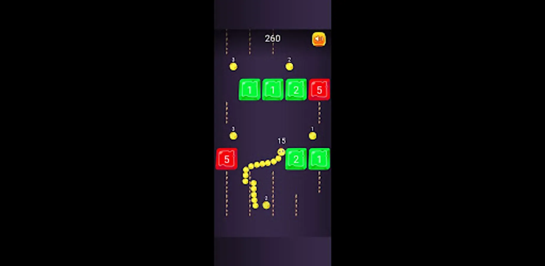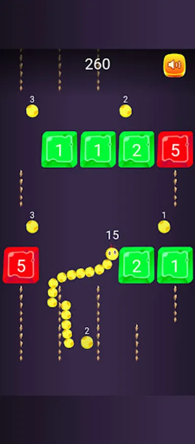Game contains different dots and other aids to make snake more powerful . collecting dots will increase the size of Snake and Your chance to live more in the game. Because long Snake can break the Blocks easily.