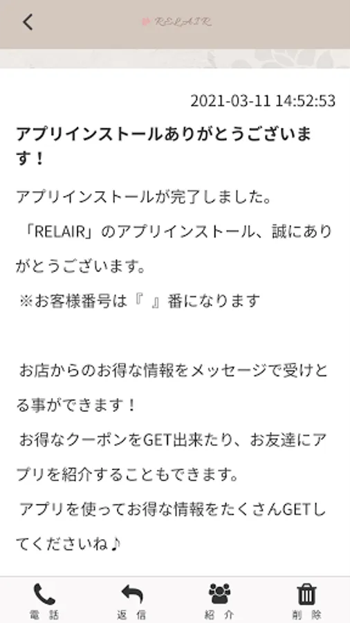 With this app, you can receive the latest information on RELAIR and use convenient functions.
