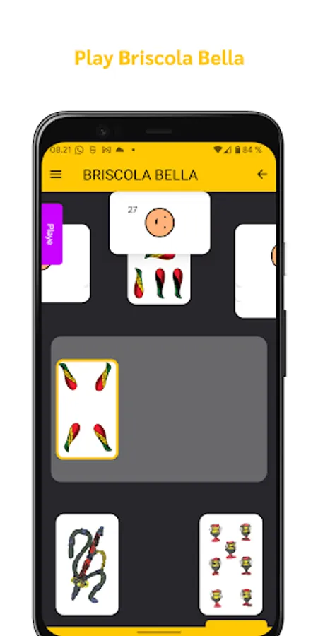 Briscola Bella is a spin off of the Italian card game Briscola, the difference between the two is that in Briscola Bella the 7 of coins is more valuable.