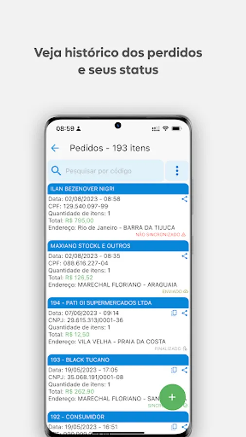 External sales application integrated with the NetZ.Gerencial ERP system developed by Relatar Sistemas.