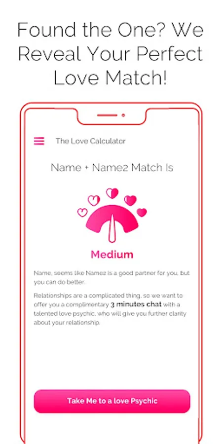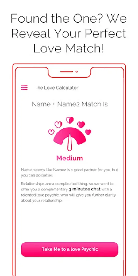 * Personal Love Calculator Match Tool that will help you see beyond the things you know.