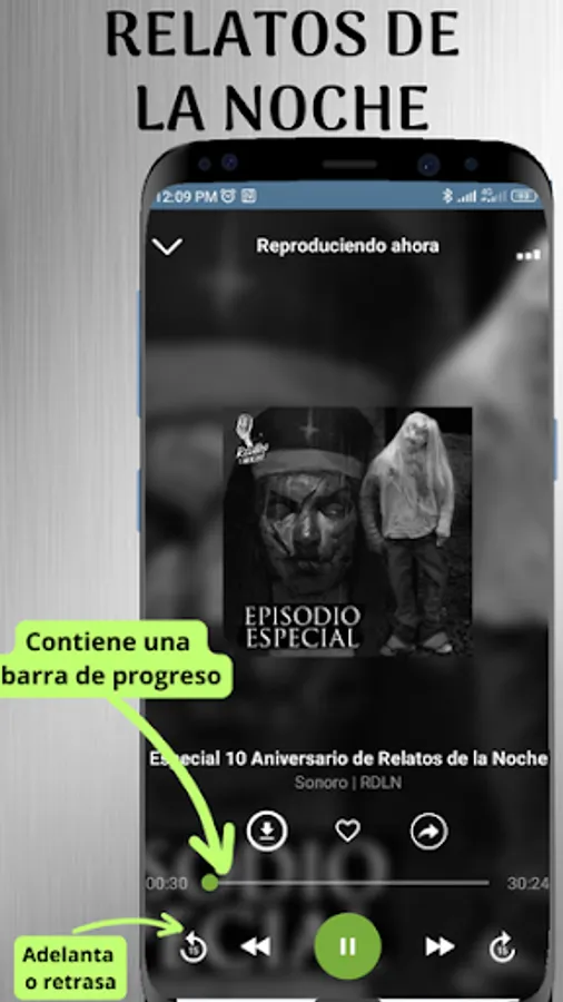 • You will find a Progress Bar to be able to place the reproduction of the podcast from where you want to listen to it