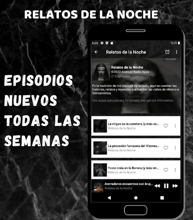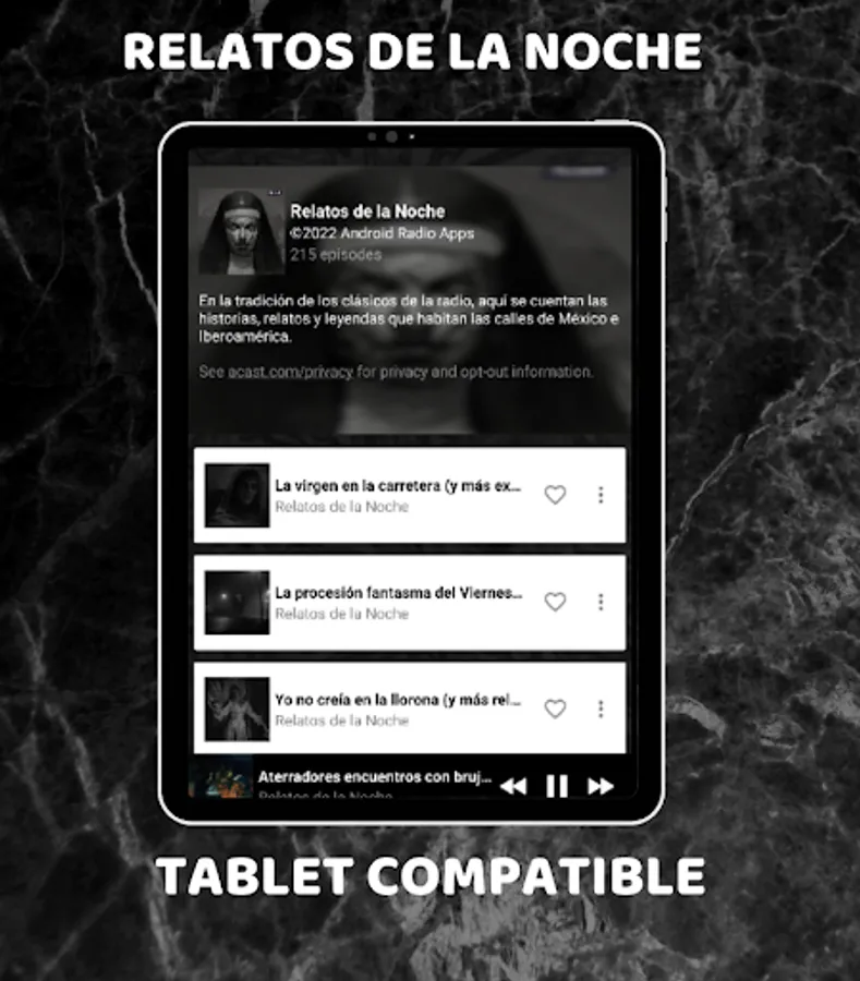 Relatos de la Noche cuenta con los podcast más aterradores del internet y de la radio totalmente en español además de ser completamente gratis.
