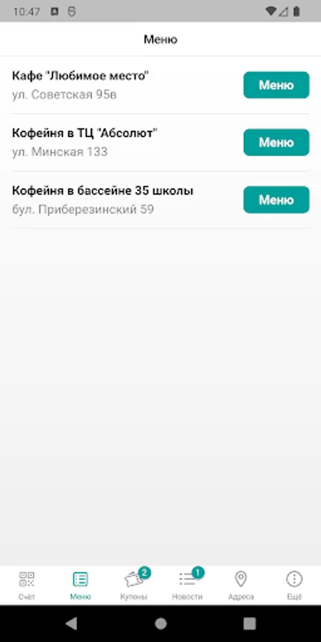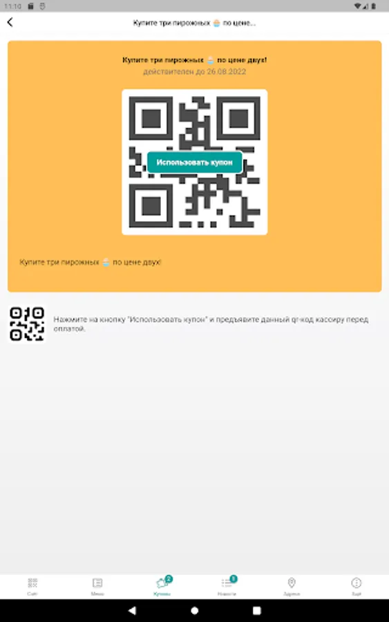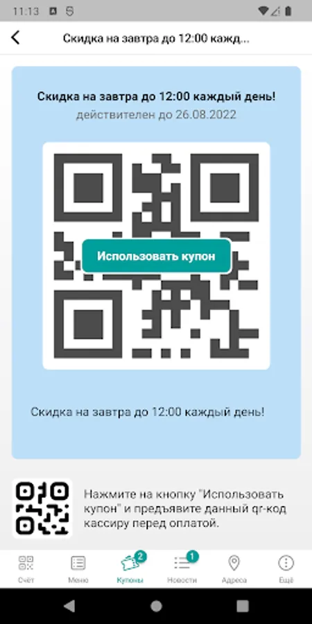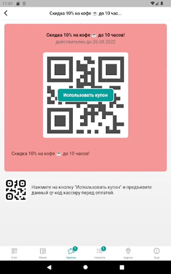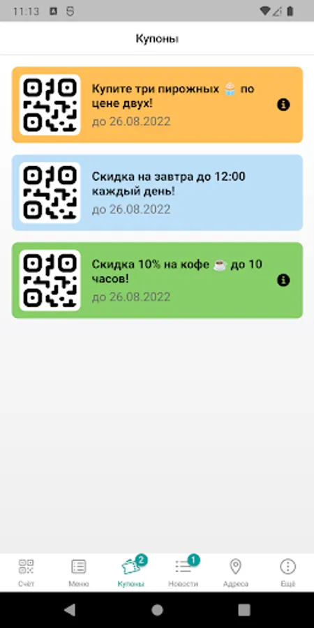 Loyalty program, discounts, bonuses, coupons and all our promotions are now in one small convenient application that will always be at hand.